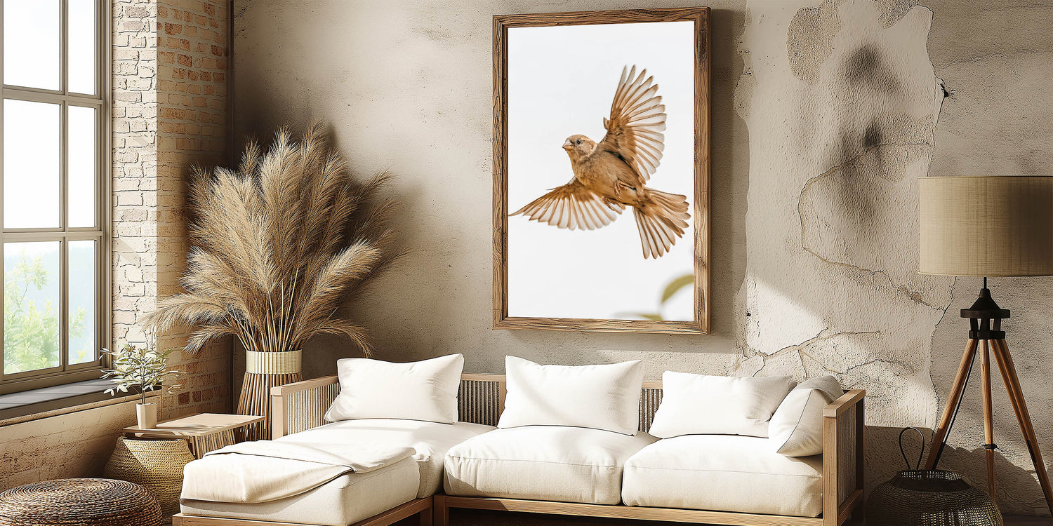 Farmhouse Wall Art | Rustic Sparrow in Flight | Vintage Country Style Print