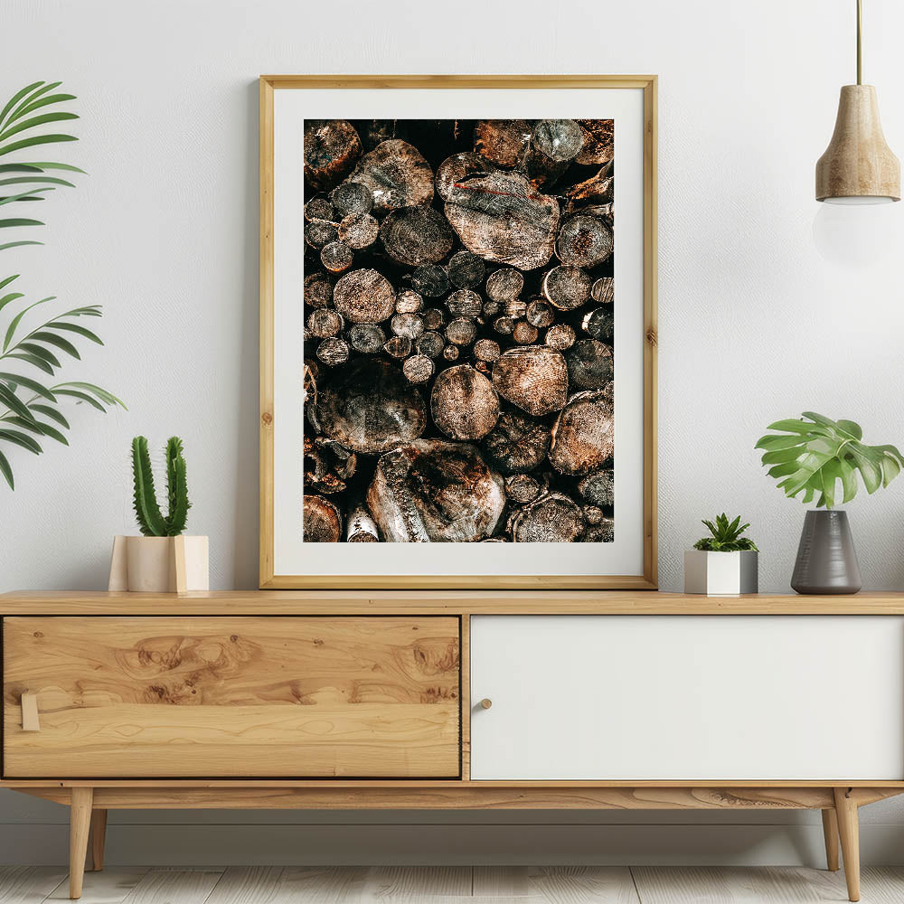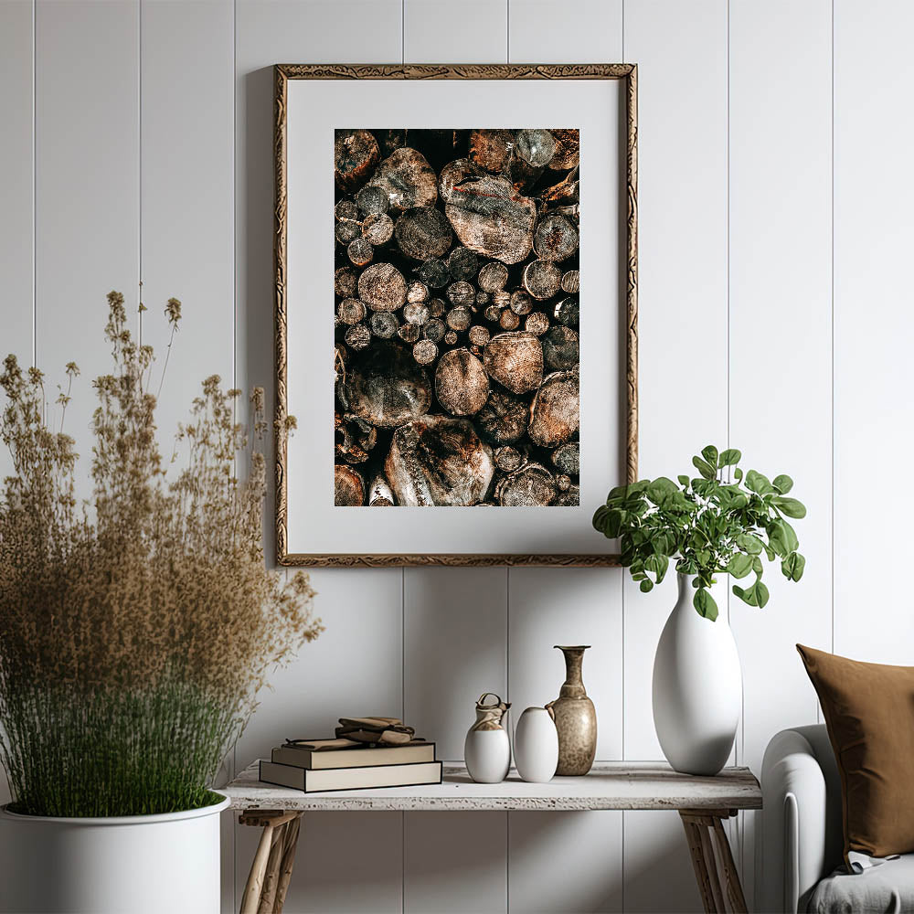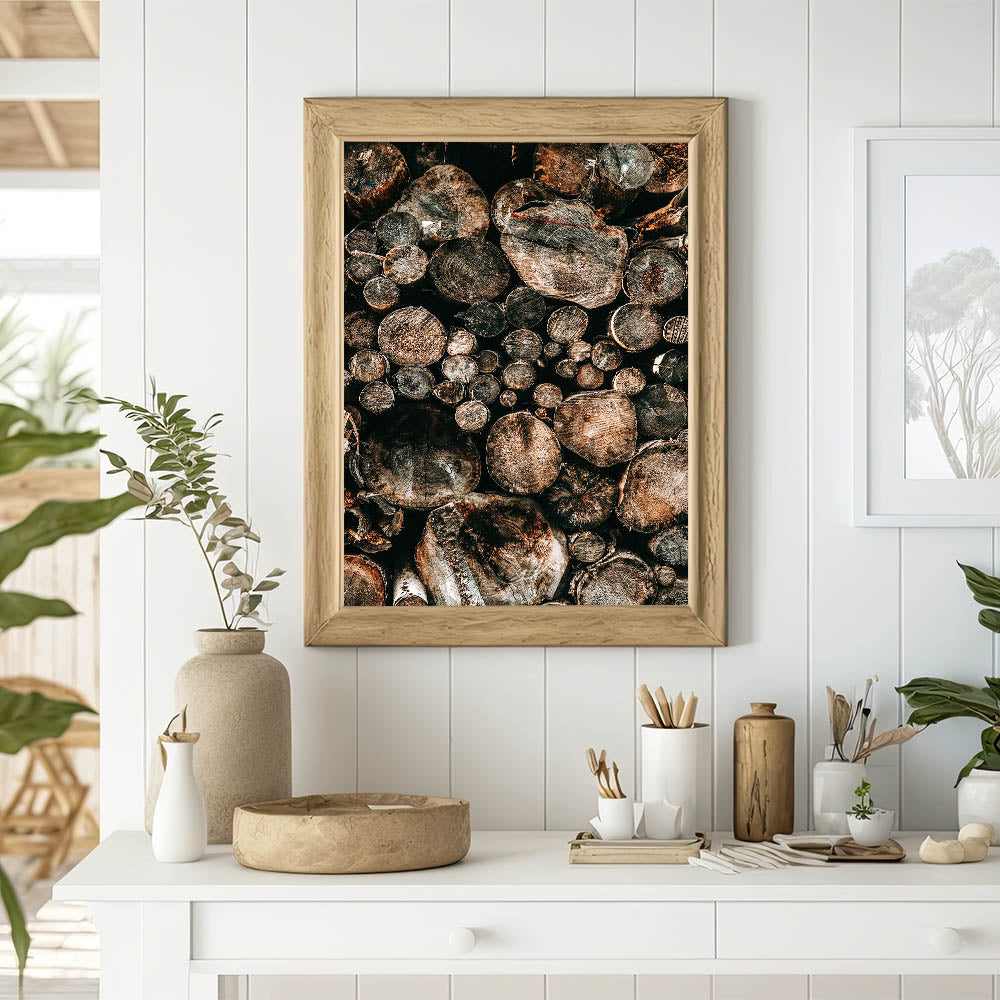 - A striking representation of natural wood logs, perfect for adding a vintage farmhouse aesthetic to any room