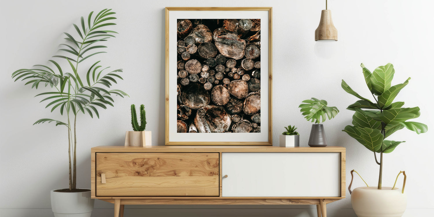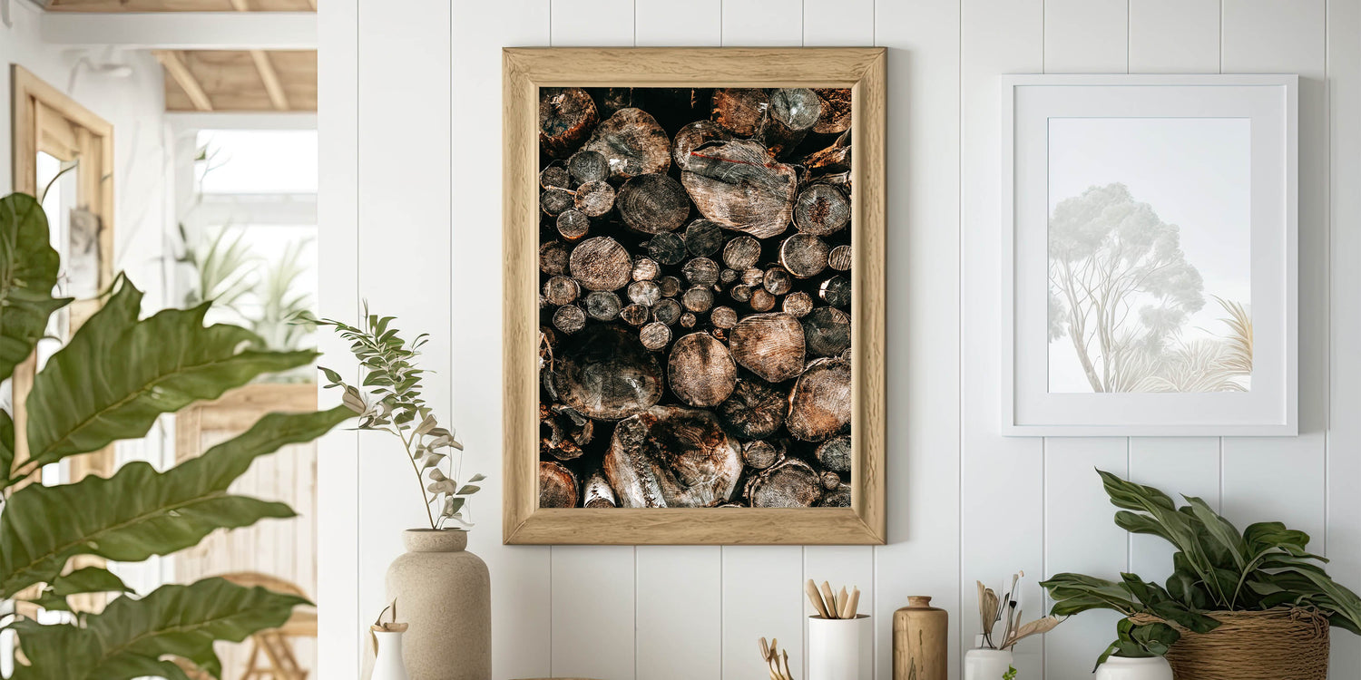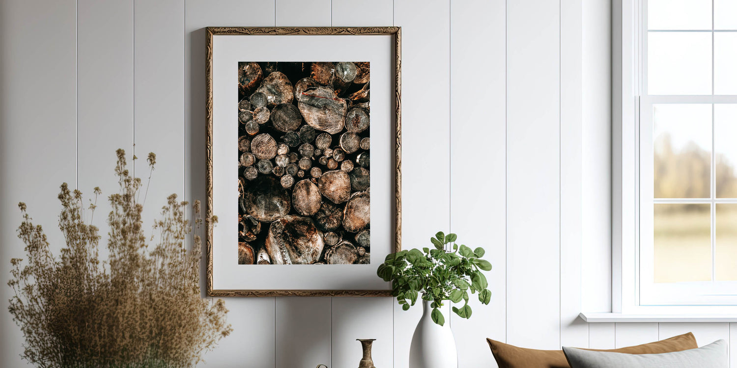 - A striking representation of natural wood logs, perfect for adding a vintage farmhouse aesthetic to any room