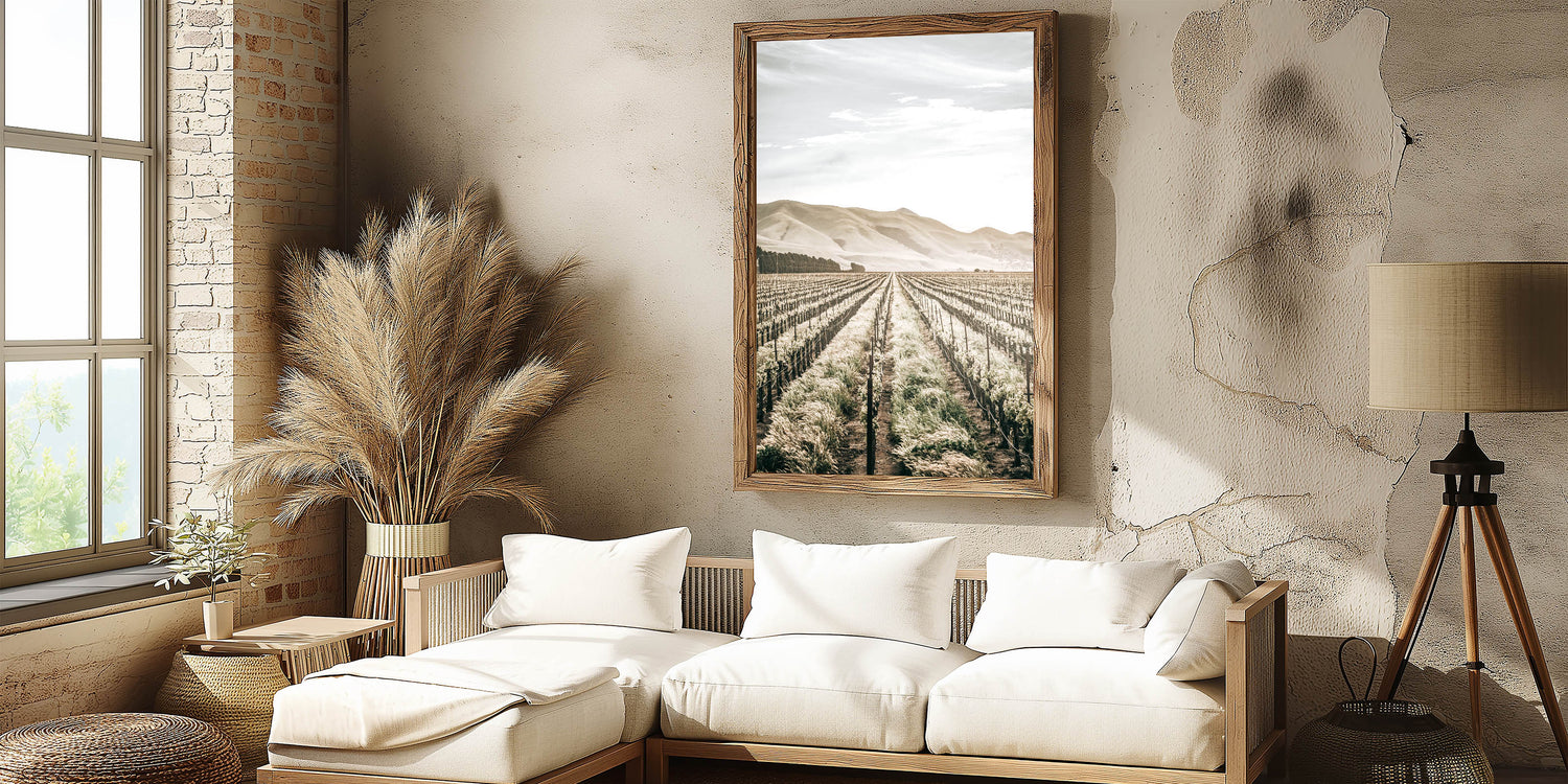 Farmhouse Wall Art: Serene Vineyard Landscape, Rustic Country Decor