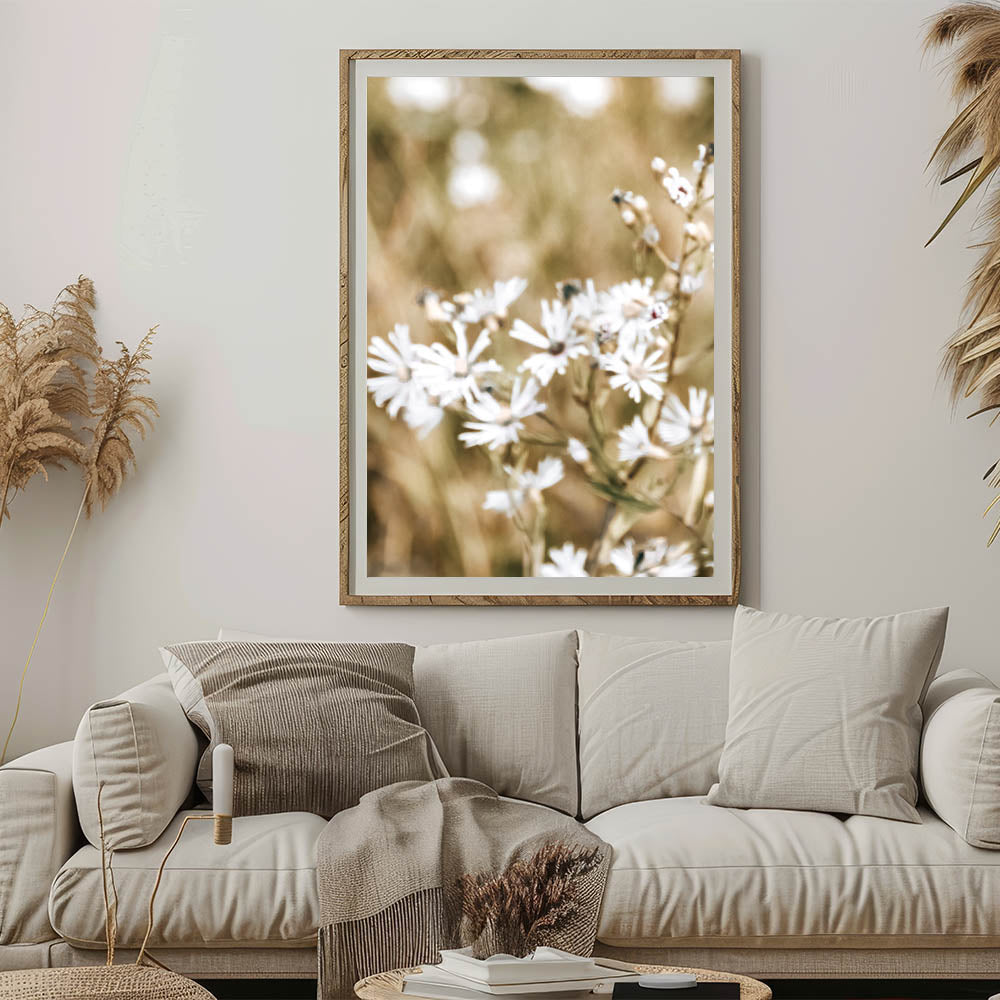 Elevate your home with the delicate beauty of nature through this stunning farmhouse wall art featuring soft white daisies in a rustic meadow. The blurred focus adds a dreamy quality, capturing the gentle flow of the countryside and the simplicity of country living. This vintage-inspired piece is perfect for adding a touch of rustic charm to your space, whether you're decorating a bedroom, living room, or hallway.