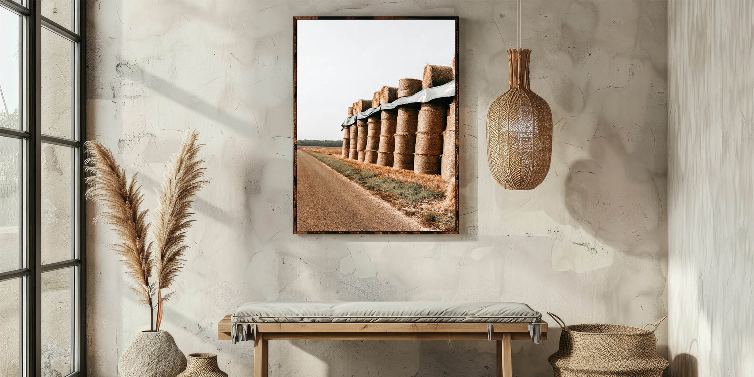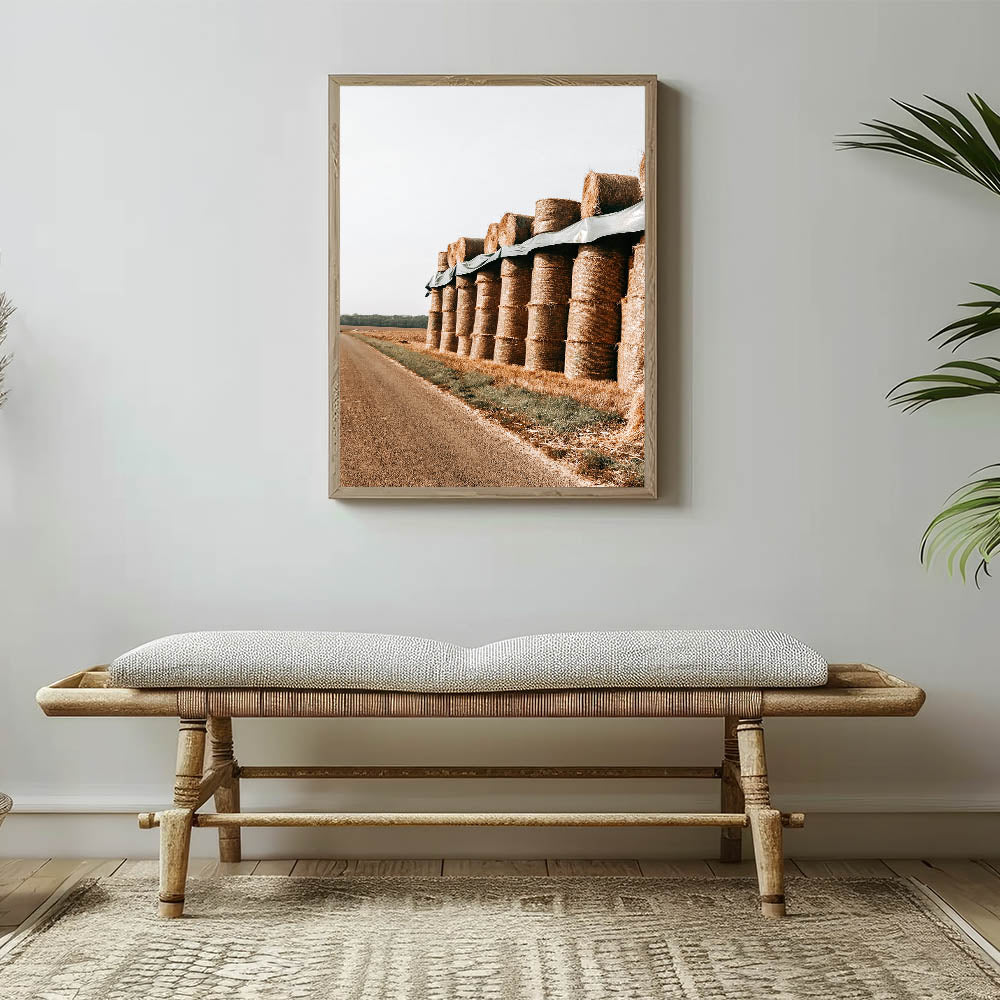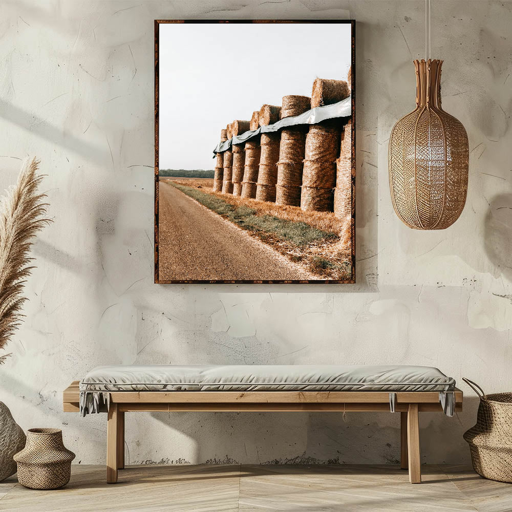 Farmhouse Wall Art - Stacked Hay Bales by Country Road with Rustic Charm