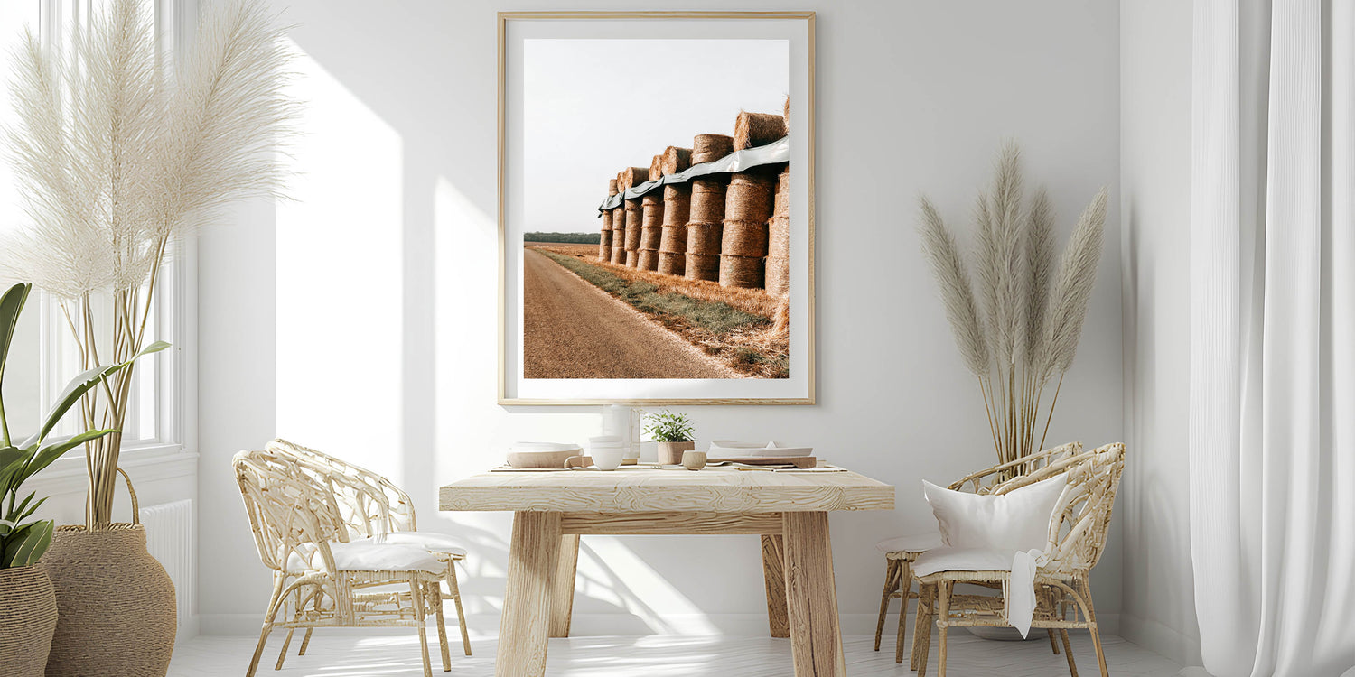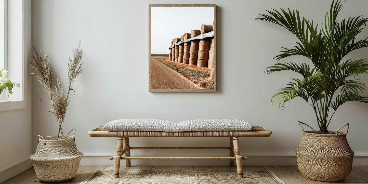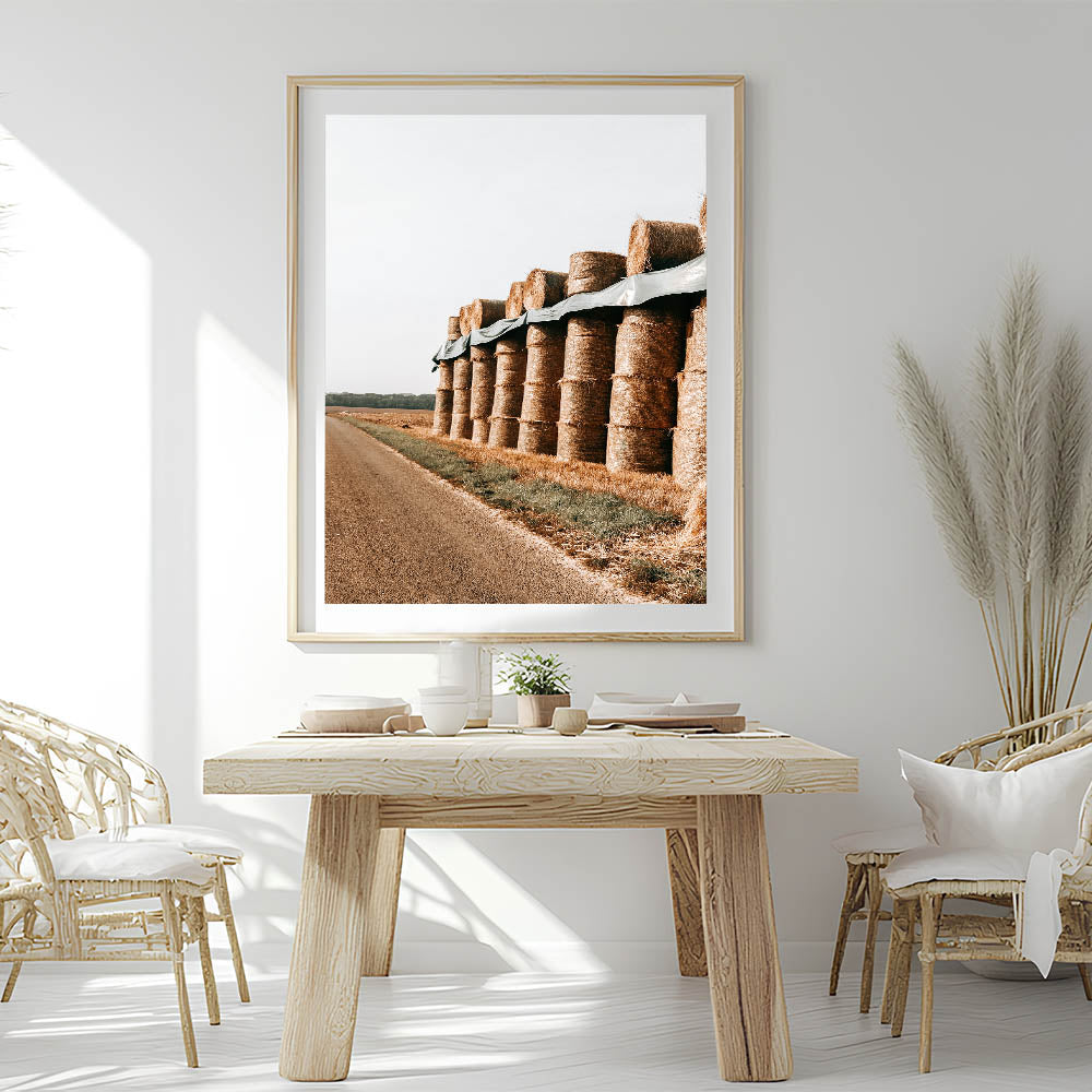 Farmhouse Wall Art - Stacked Hay Bales by Country Road with Rustic Charm