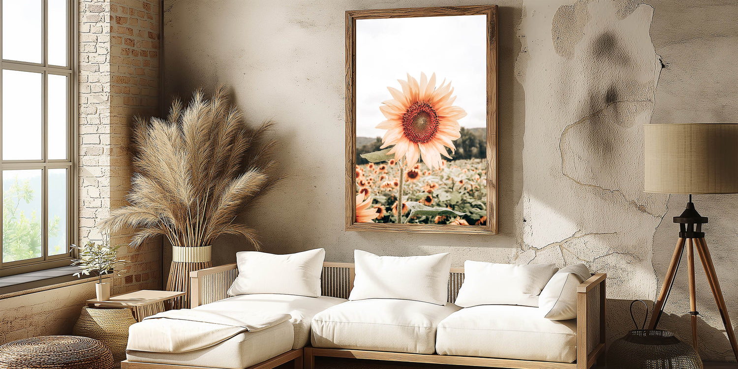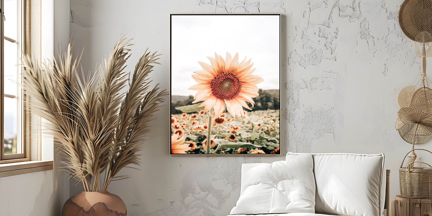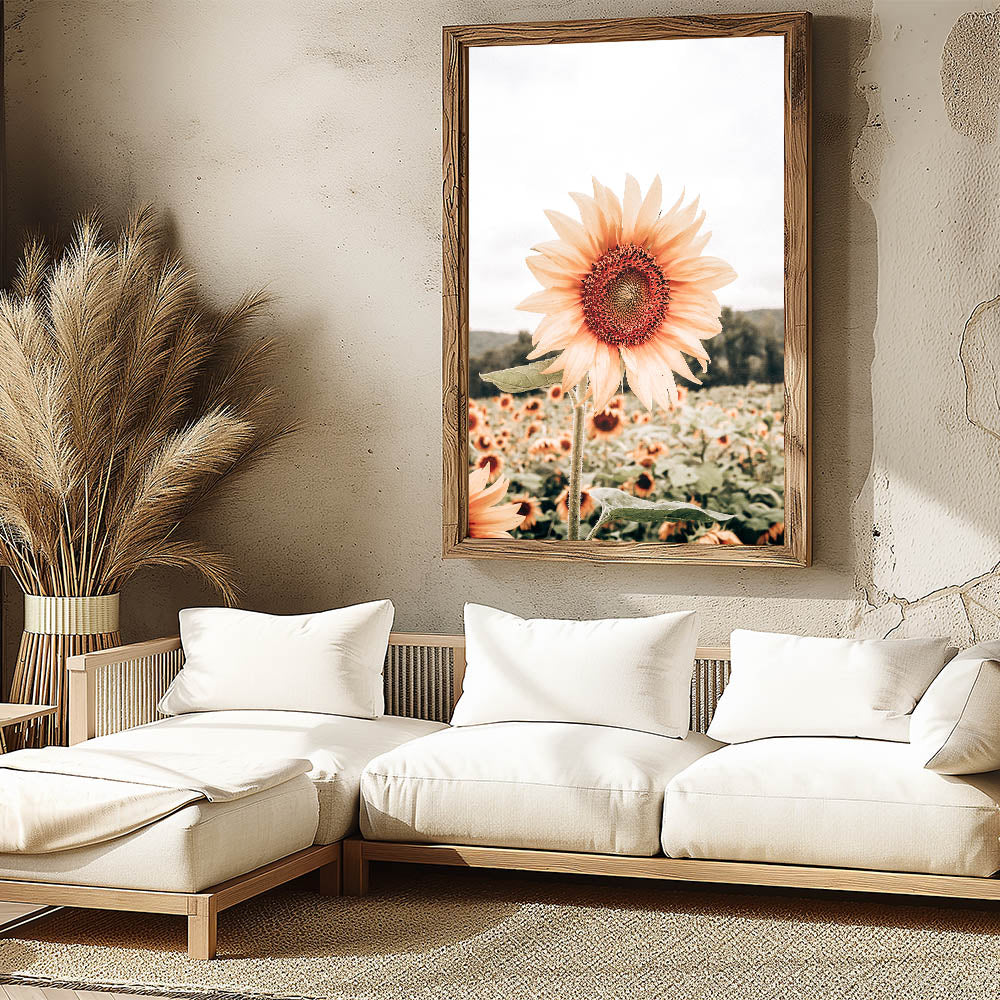 Ideal for those looking to infuse their space with a charming farmhouse style, this sunflower print creates a welcoming atmosphere. Whether displayed in a living room, bedroom, or hallway, this piece adds a touch of nature and elegance that will captivate any guest.