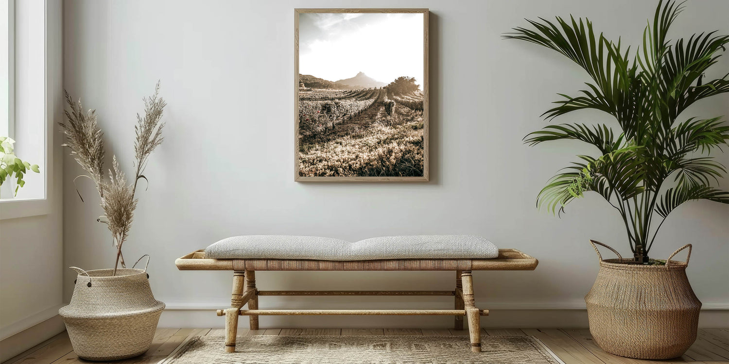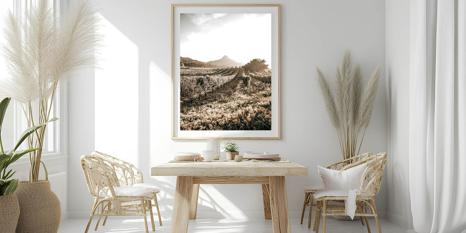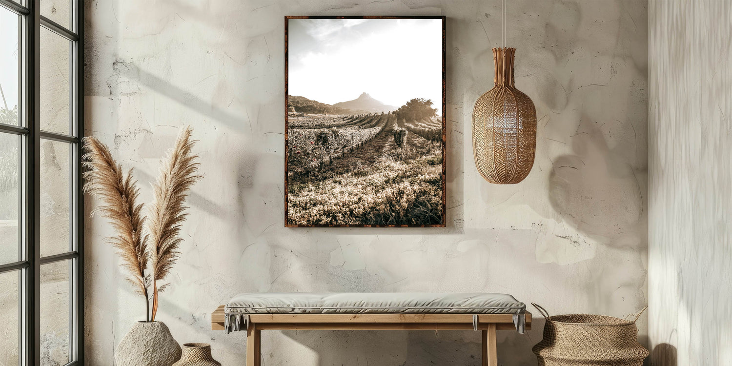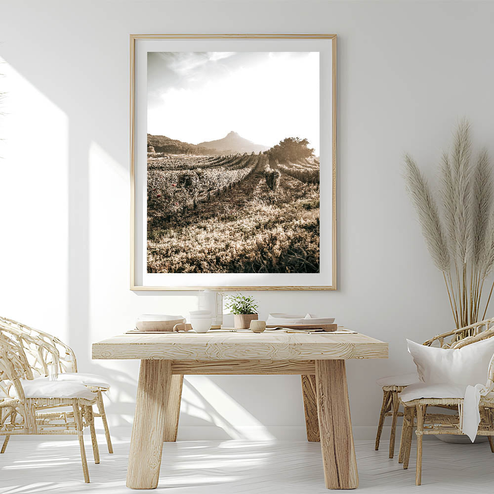Farmhouse Wall Art: Sunlit Vineyard Rows, Rustic Country Charm Decor