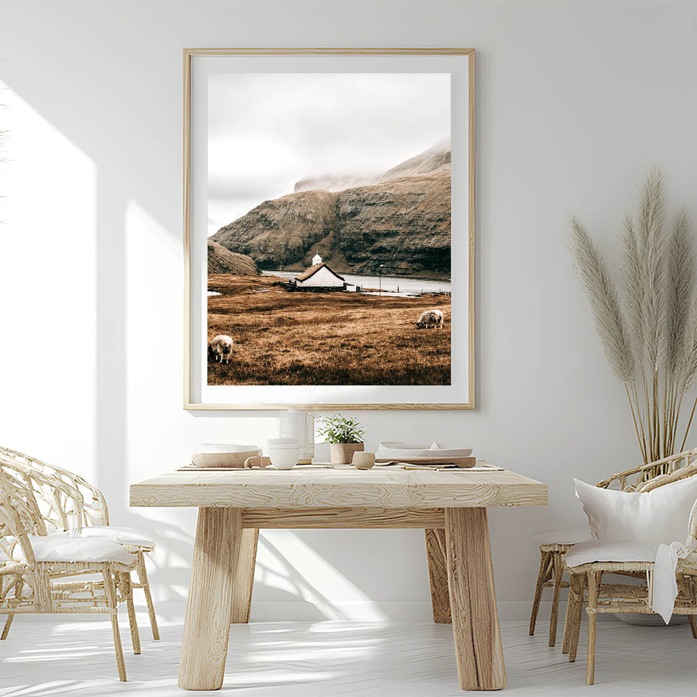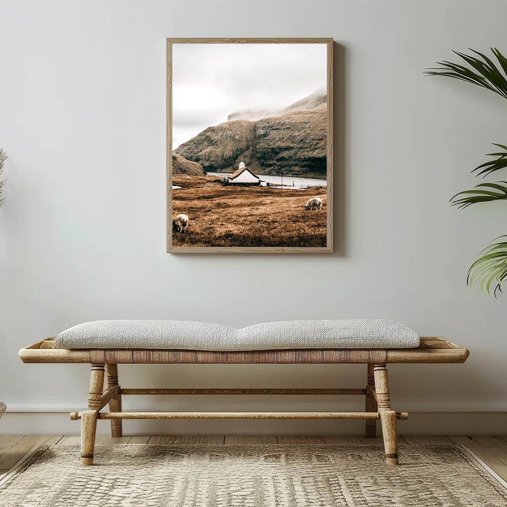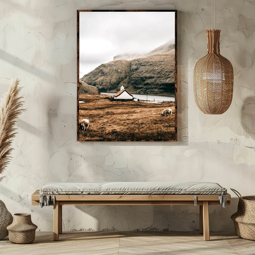 Farmhouse Wall Art – Tranquil Church in Rustic Mountain Scenery