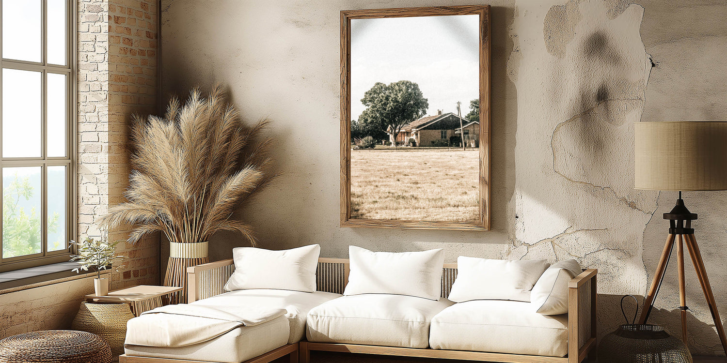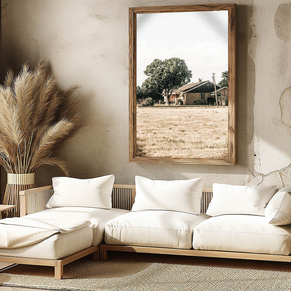 This print is ideal for those looking to create a farmhouse, rustic, or country-style interior. Perfect for living rooms, dining areas, or bedrooms, this artwork will add a touch of rural tranquility to your home. The muted color palette and natural scenery invite calmness and warmth into any space.