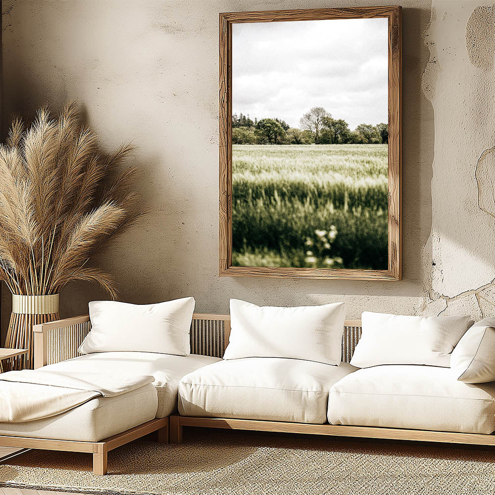 This artwork brings the beauty and calm of the countryside into your home, offering a gentle reminder of nature's simplicity. Whether you're looking to enhance your farmhouse décor or create a peaceful focal point, this serene green field wall art will add a touch of rustic charm to any space.