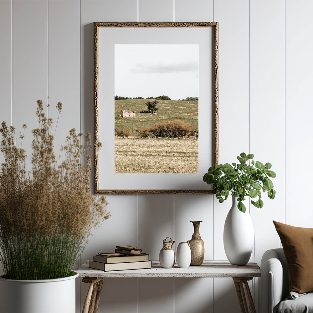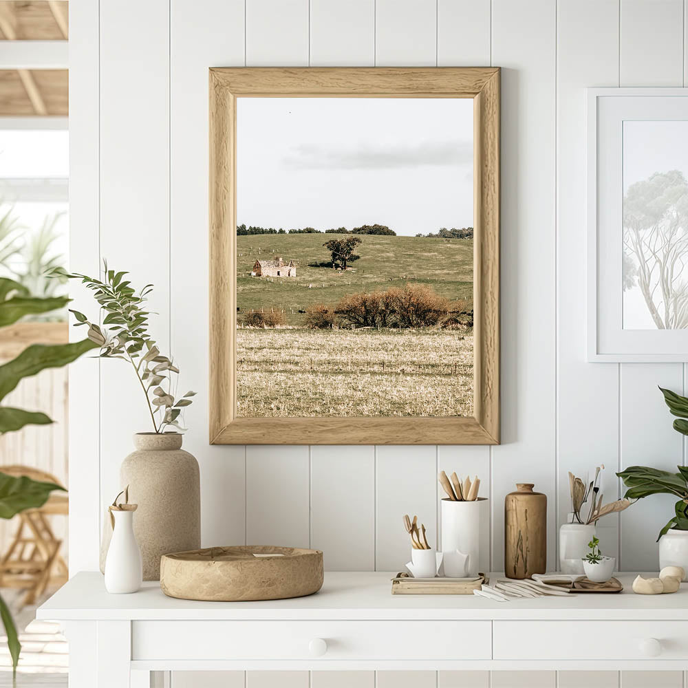 Bring a sense of peaceful country living into your home with this beautiful farmhouse wall art. Featuring a vintage country home set amidst rolling green hills, this artwork captures the essence of rural tranquility. The soft hues and charming rustic landscape make it an ideal piece for enhancing any farmhouse-style or country-inspired décor.