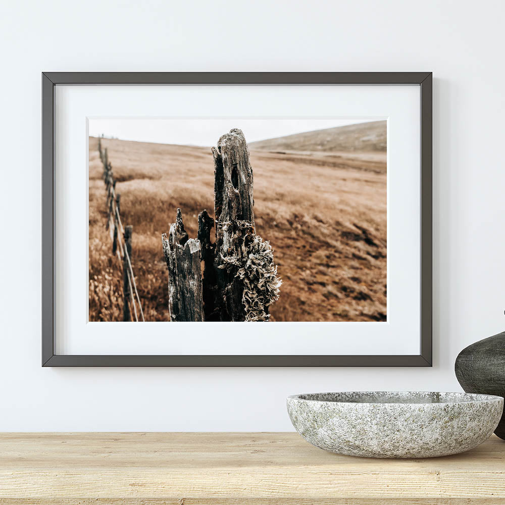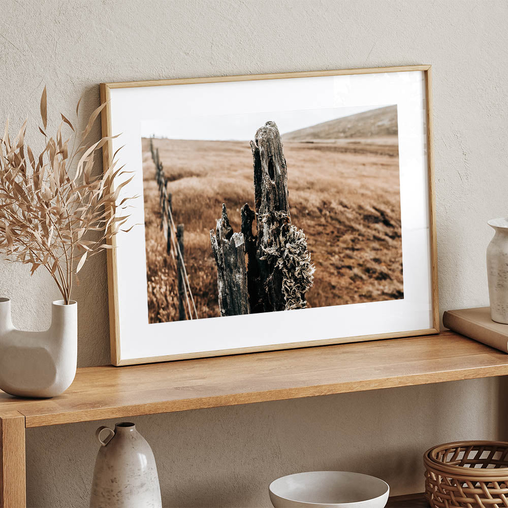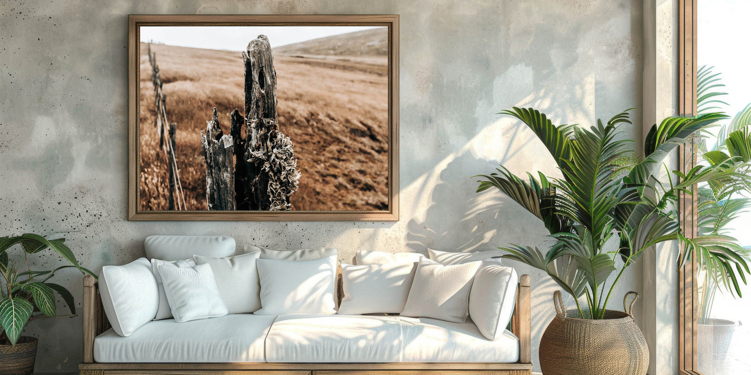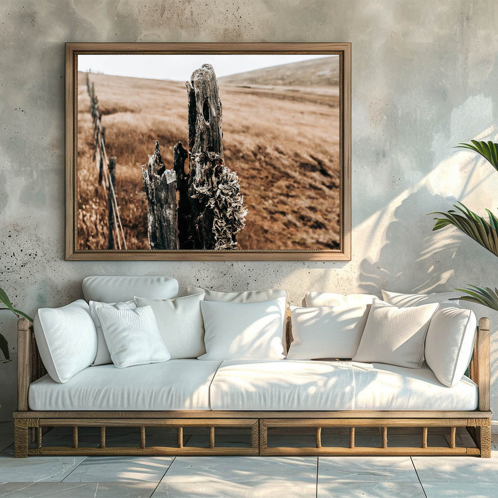 Add a touch of rustic charm to your home with this farmhouse wall art featuring a beautifully weathered wooden fence post in a vast, open field. The worn texture of the wood, combined with the earthy tones of the surrounding landscape, evokes the quiet beauty of rural life. This artwork captures the essence of vintage farmhouse aesthetics, making it a perfect addition to any home with a rustic or country-inspired decor.