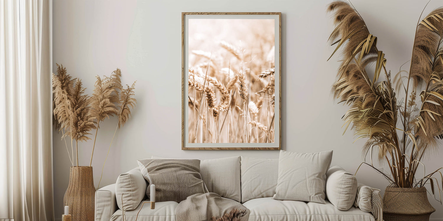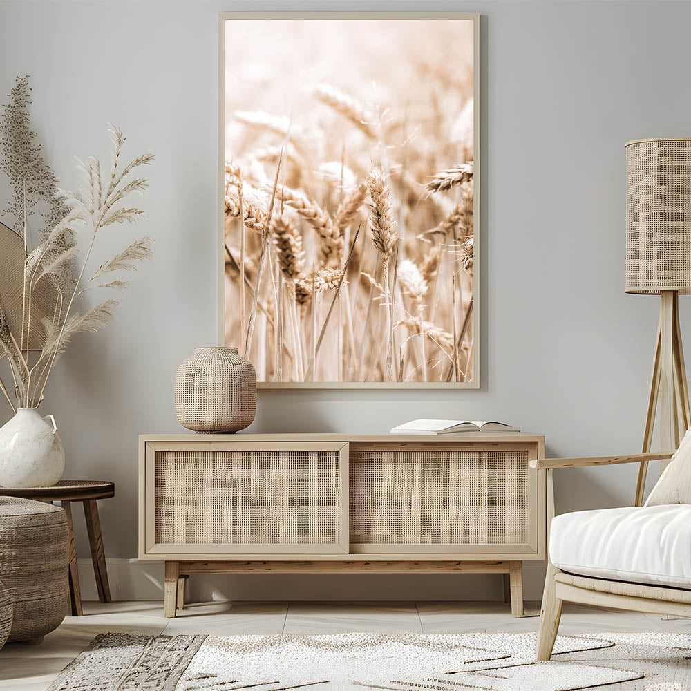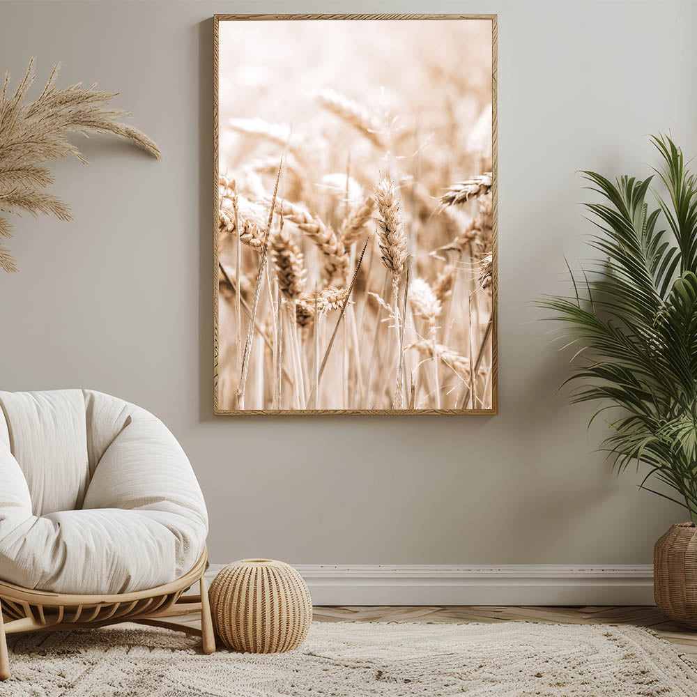 Bring the essence of the countryside into your home with this beautiful farmhouse wall art featuring a close-up view of golden wheat stalks ready for harvest. The intricate details of the wheat create a sense of natural beauty and rustic charm, making this piece perfect for enhancing your country living style decor. The soft, neutral tones evoke the warmth of the golden fields, ideal for adding a touch of calm and tranquility to your space.