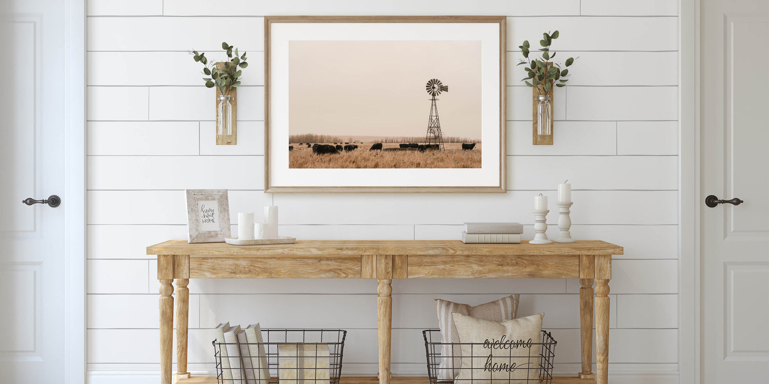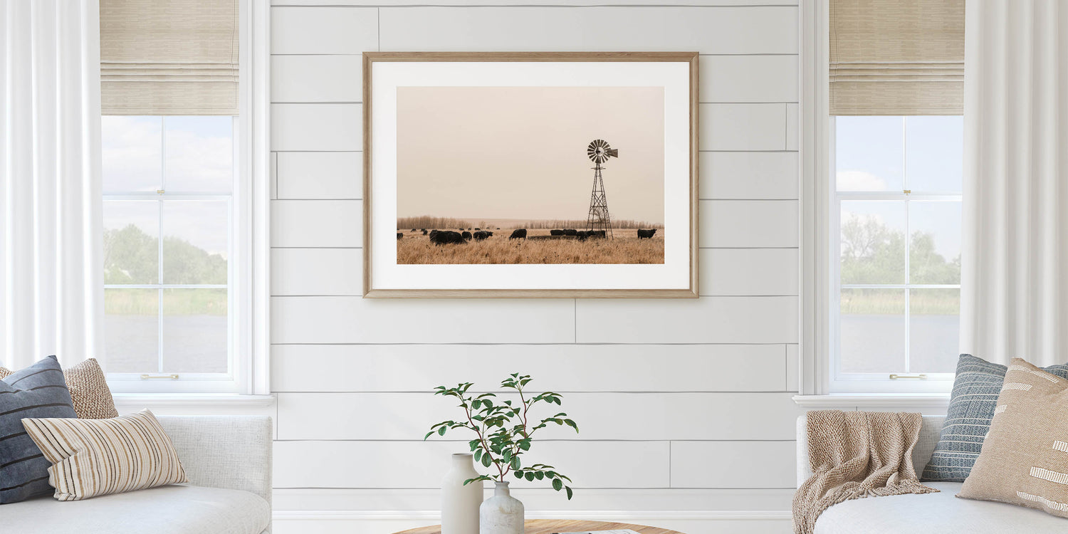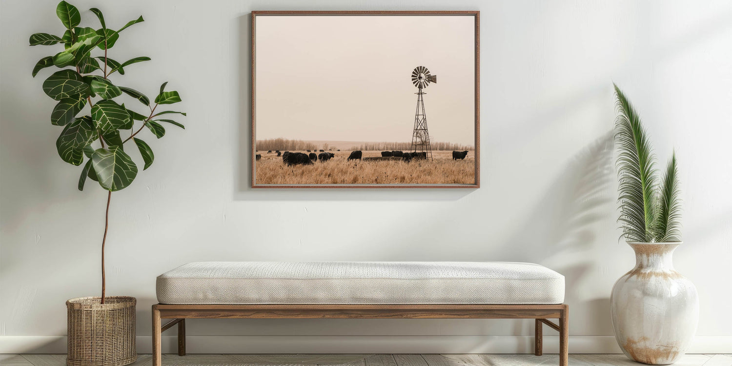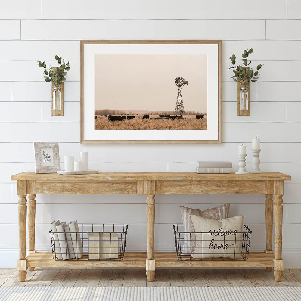 Farmhouse Wall Art: Windmill & Cattle Scene - Rustic Country Decor