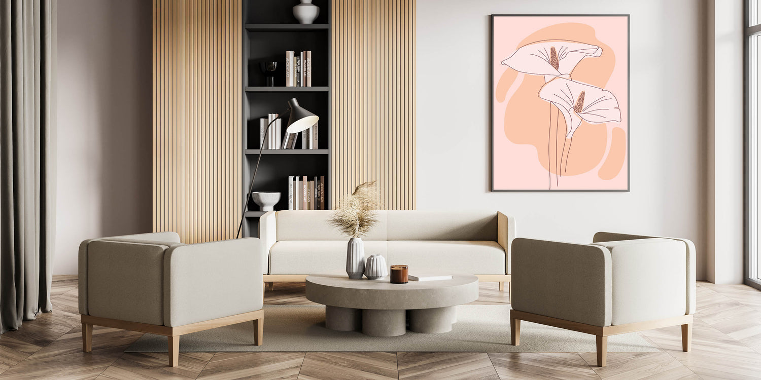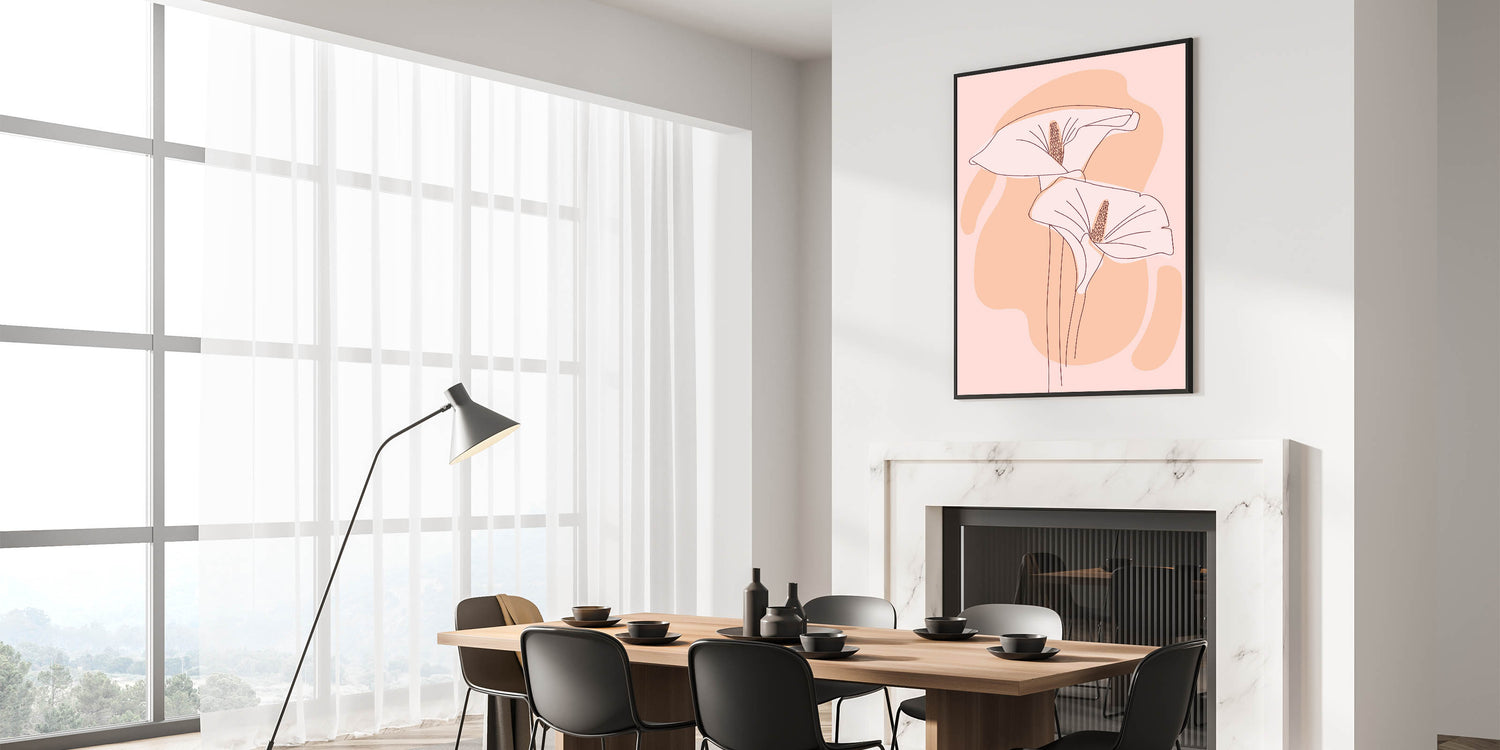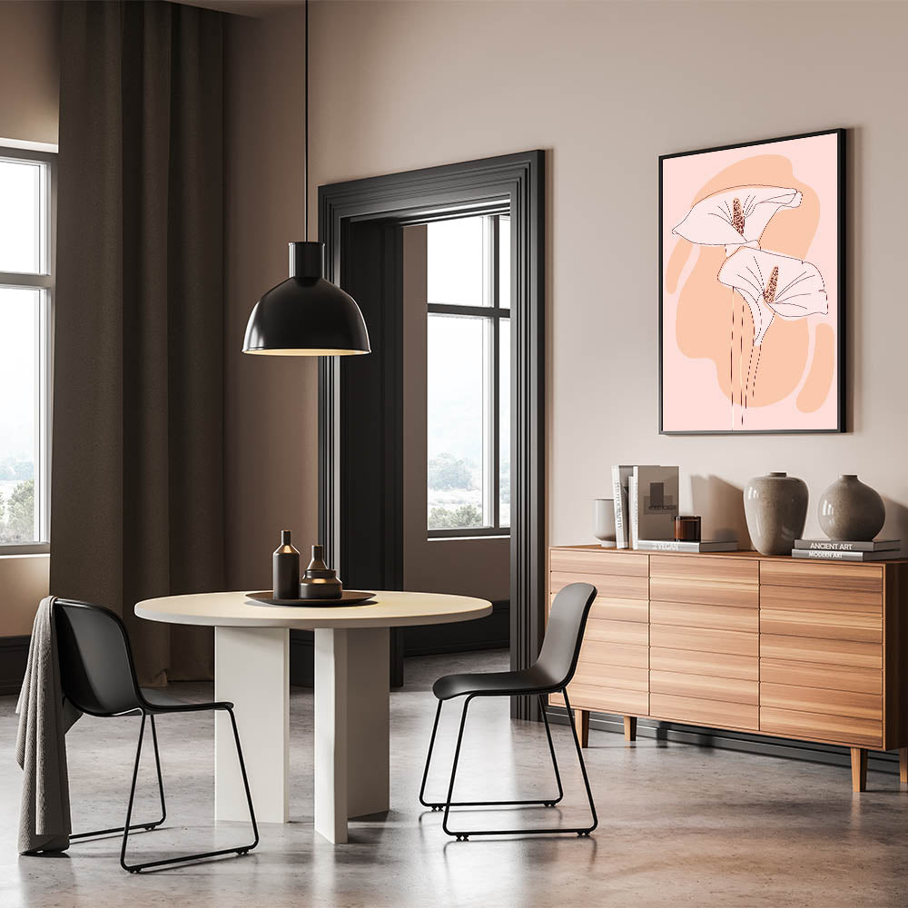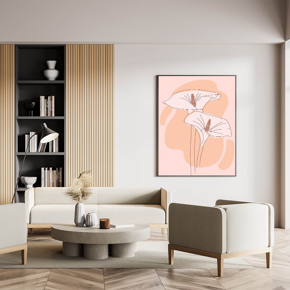 Elevate your home with the serene beauty of this floral Bohemian wall art. Featuring elegant, softly illustrated flowers in light peach and blush tones, this artwork brings a calm and graceful aesthetic to any room. The minimalist linework and gentle color palette make it an ideal choice for modern or boho-inspired interiors, offering a subtle yet captivating presence.