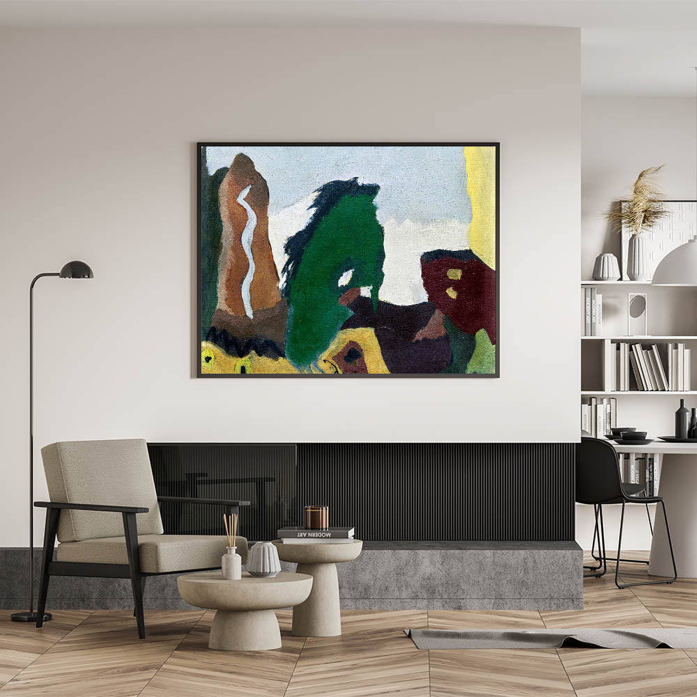 Embrace the abstract beauty of nature with "Foot of Lake," a distinctive piece of modern wall art by Arthur Dove. This contemporary artwork features bold shapes and earthy tones, capturing the essence of a natural landscape with minimalistic abstraction. Perfect for trendy home decor, it brings a touch of sophistication and creativity to any space.
