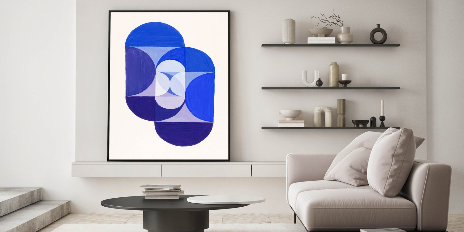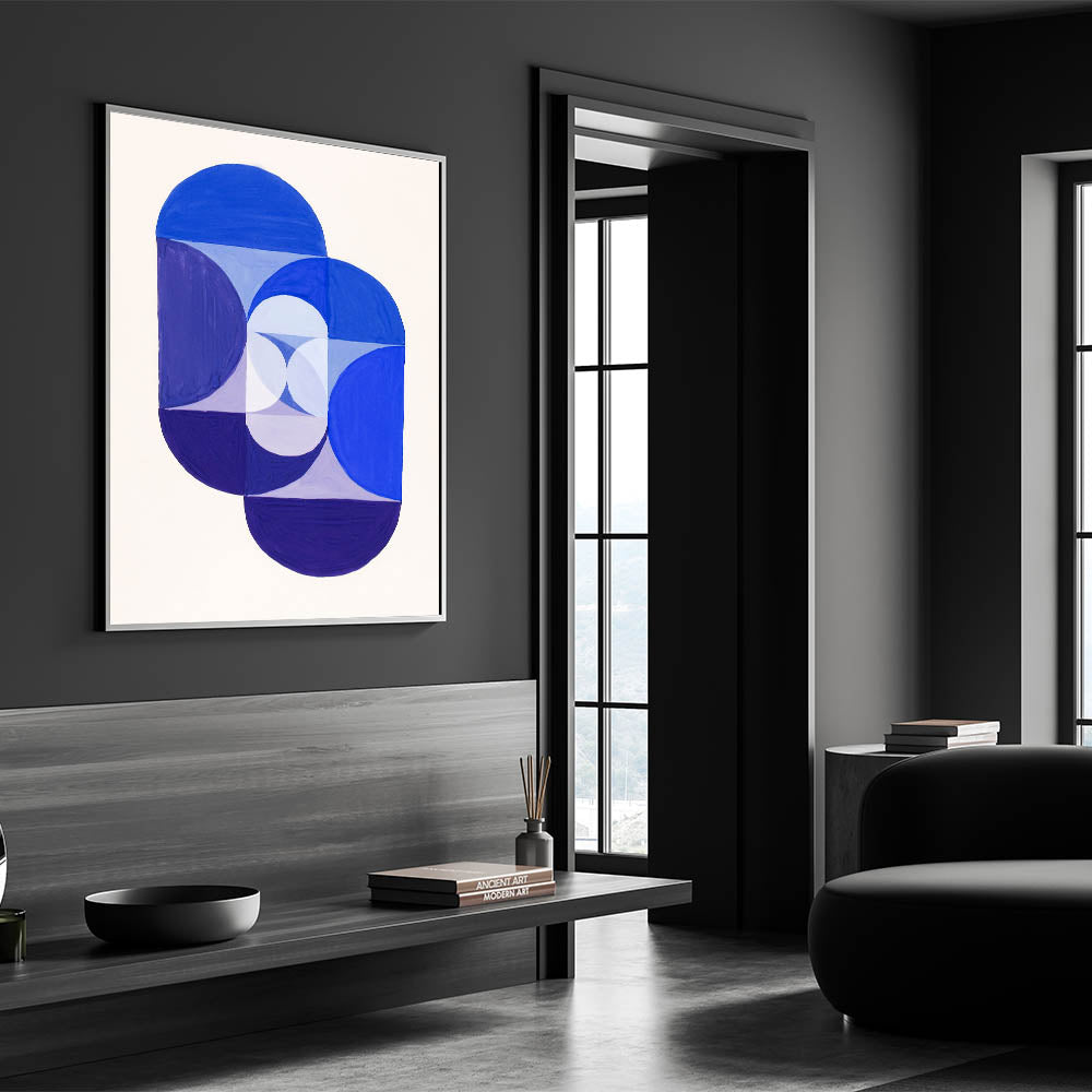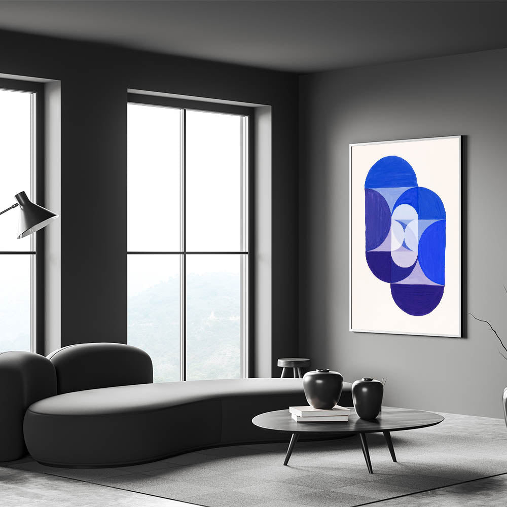 Elevate your home with this geometric blue artwork, a perfect choice for those who value simplicity, balance, and modern design.
