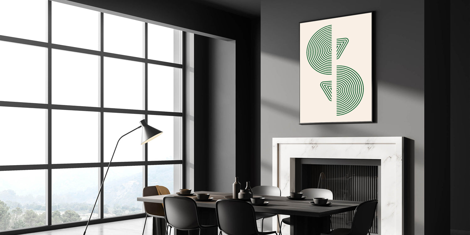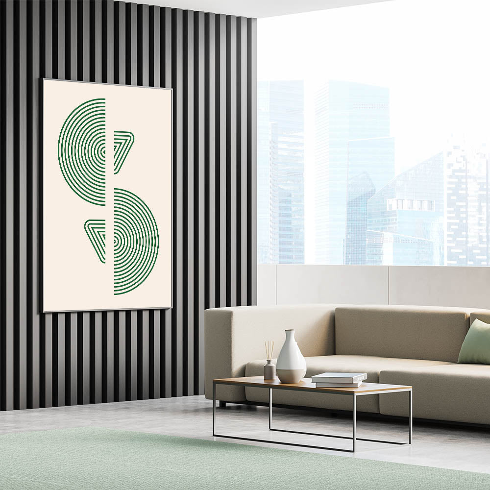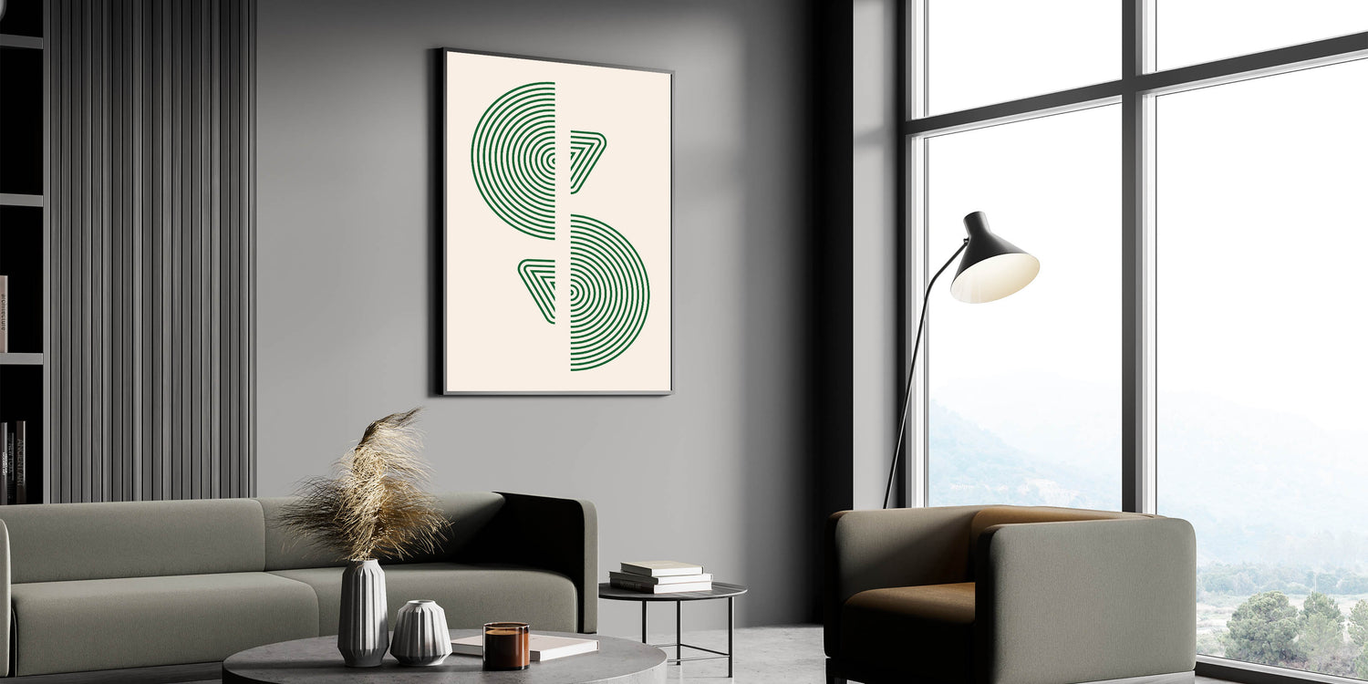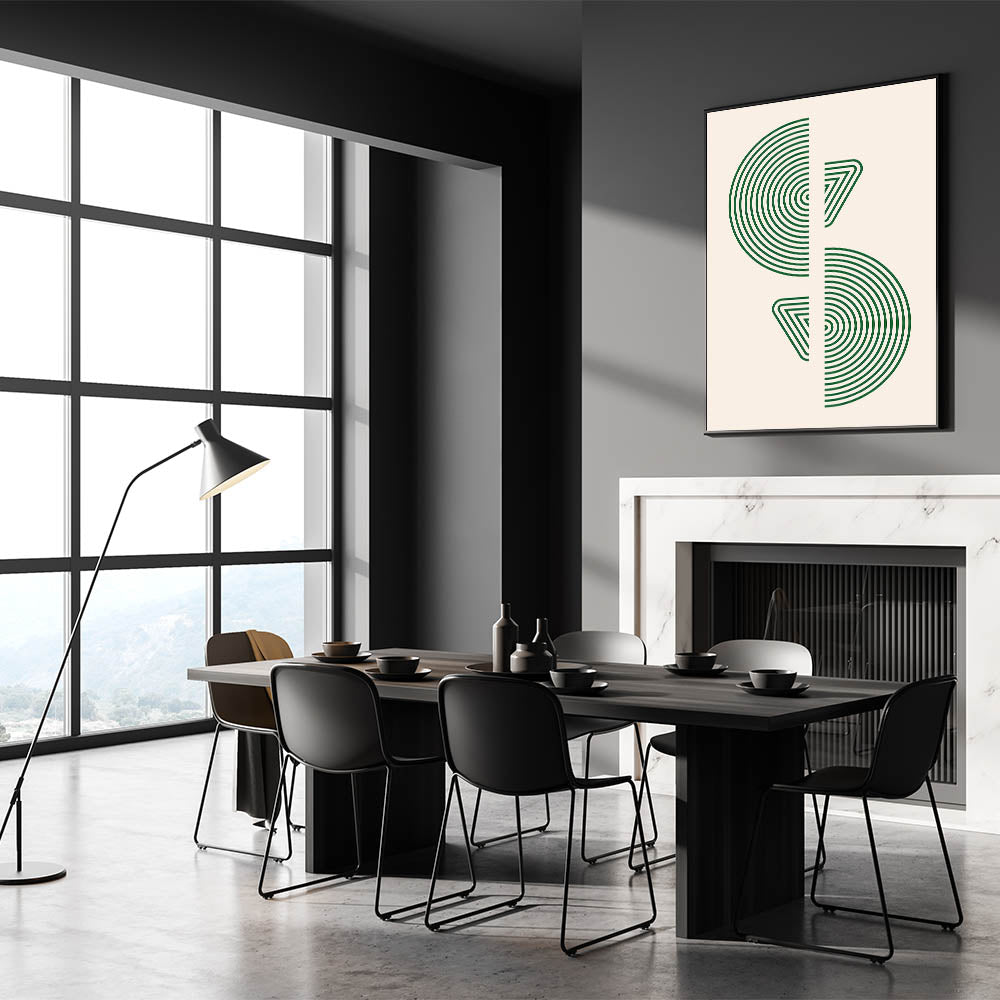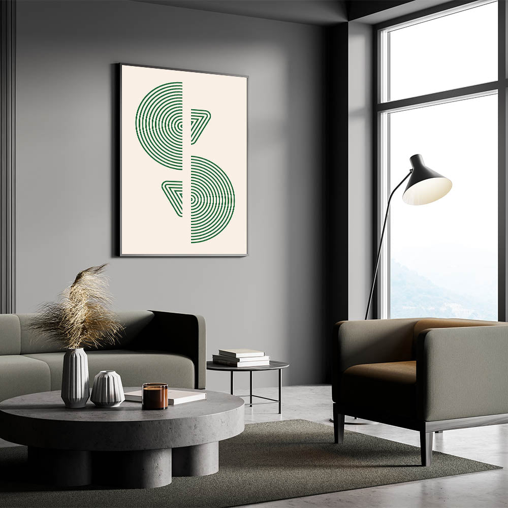 Bring a sense of modern sophistication to your home with this geometric wall art, featuring concentric circles and triangular patterns in vibrant green. This minimalist design offers a bold yet refined visual statement, perfect for enhancing any space with a touch of modernity and style. Ideal for contemporary, Scandinavian, or bohemian interiors, this artwork adds a fresh and dynamic element to your decor.