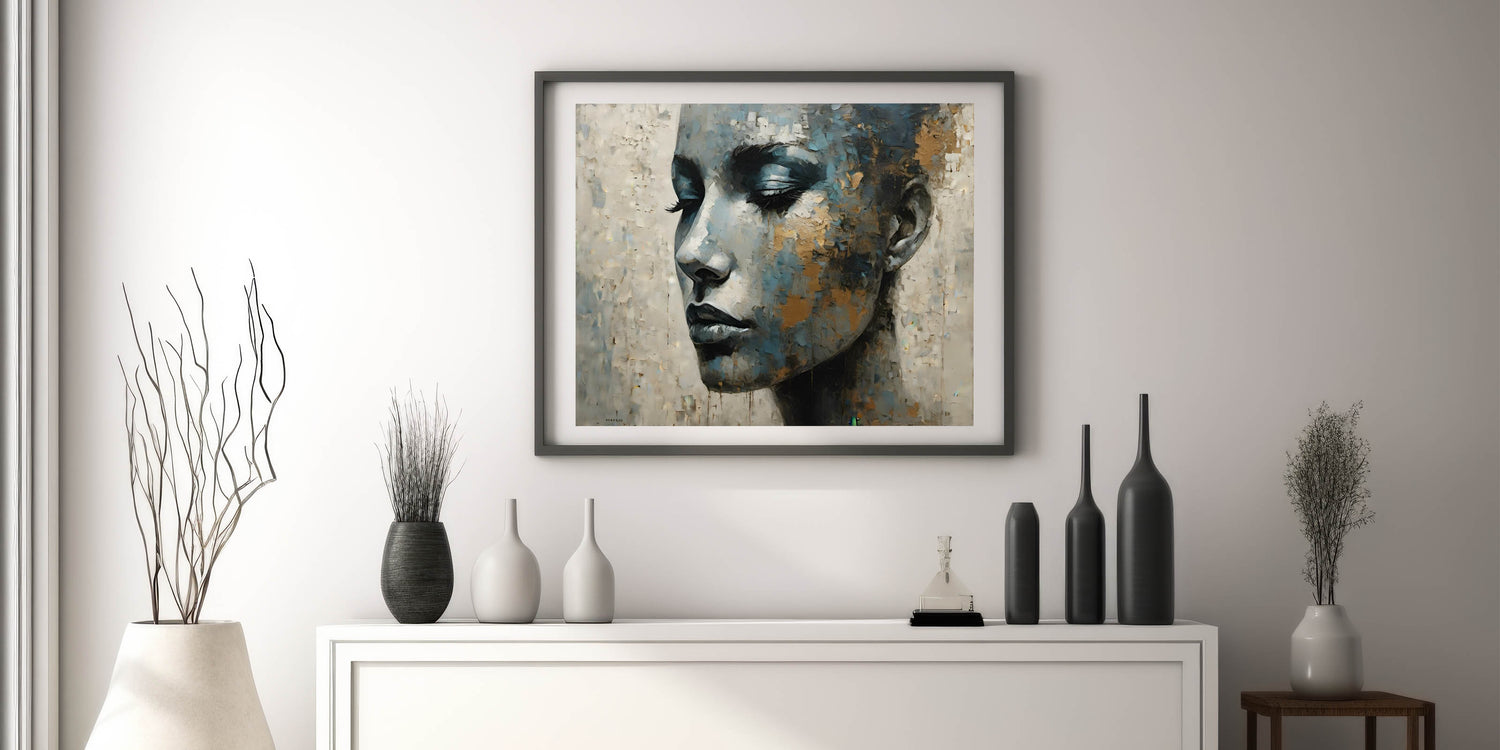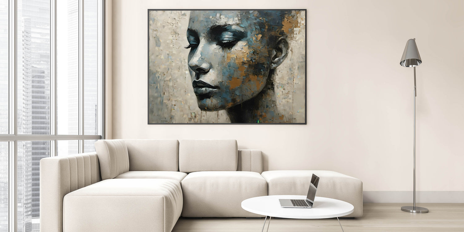 Glam Wall Art - Emotional Portrait with Gold and Blue Textures