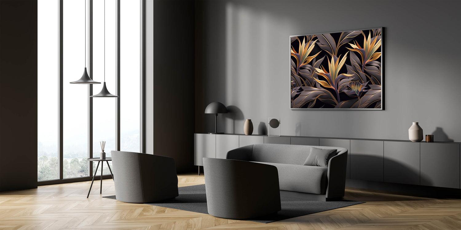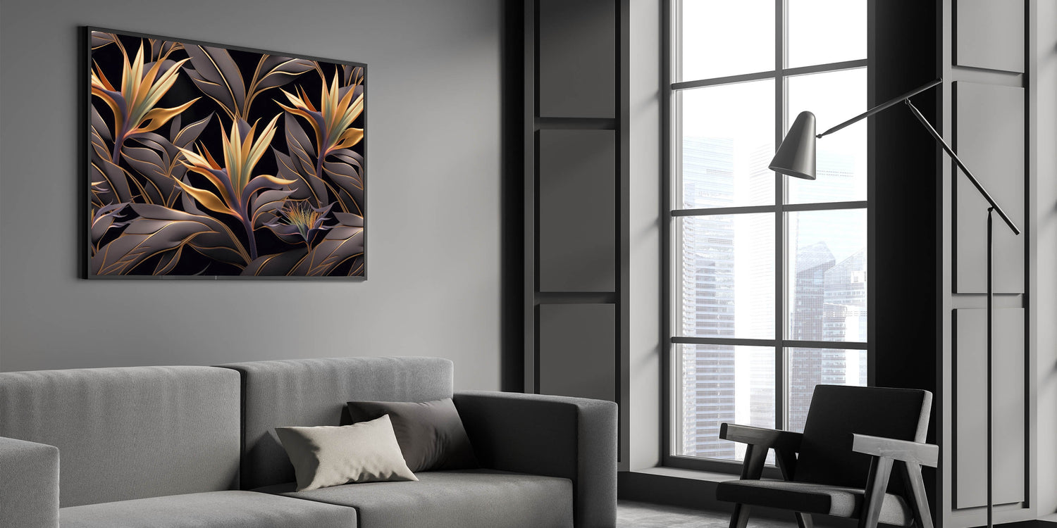 This artwork from the Glam Wall Art collection offers a perfect balance of nature and luxury, making it an ideal choice for those looking to enhance their decor with bold, elegant statement pieces.
