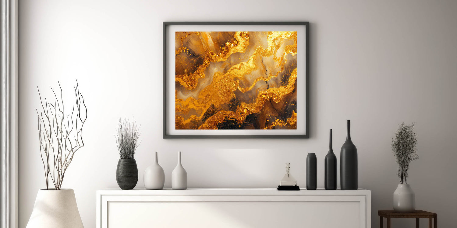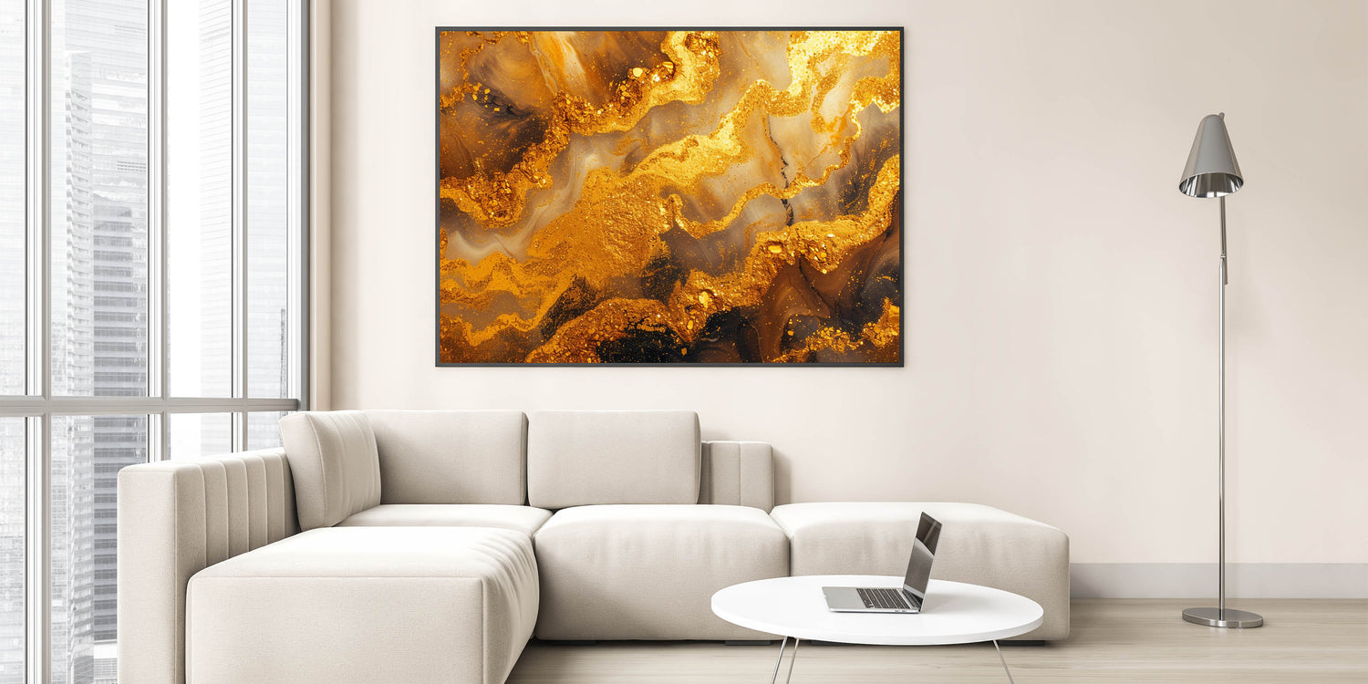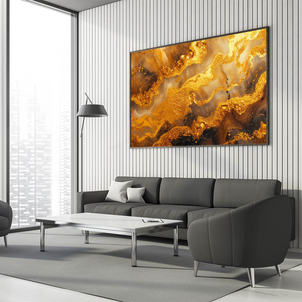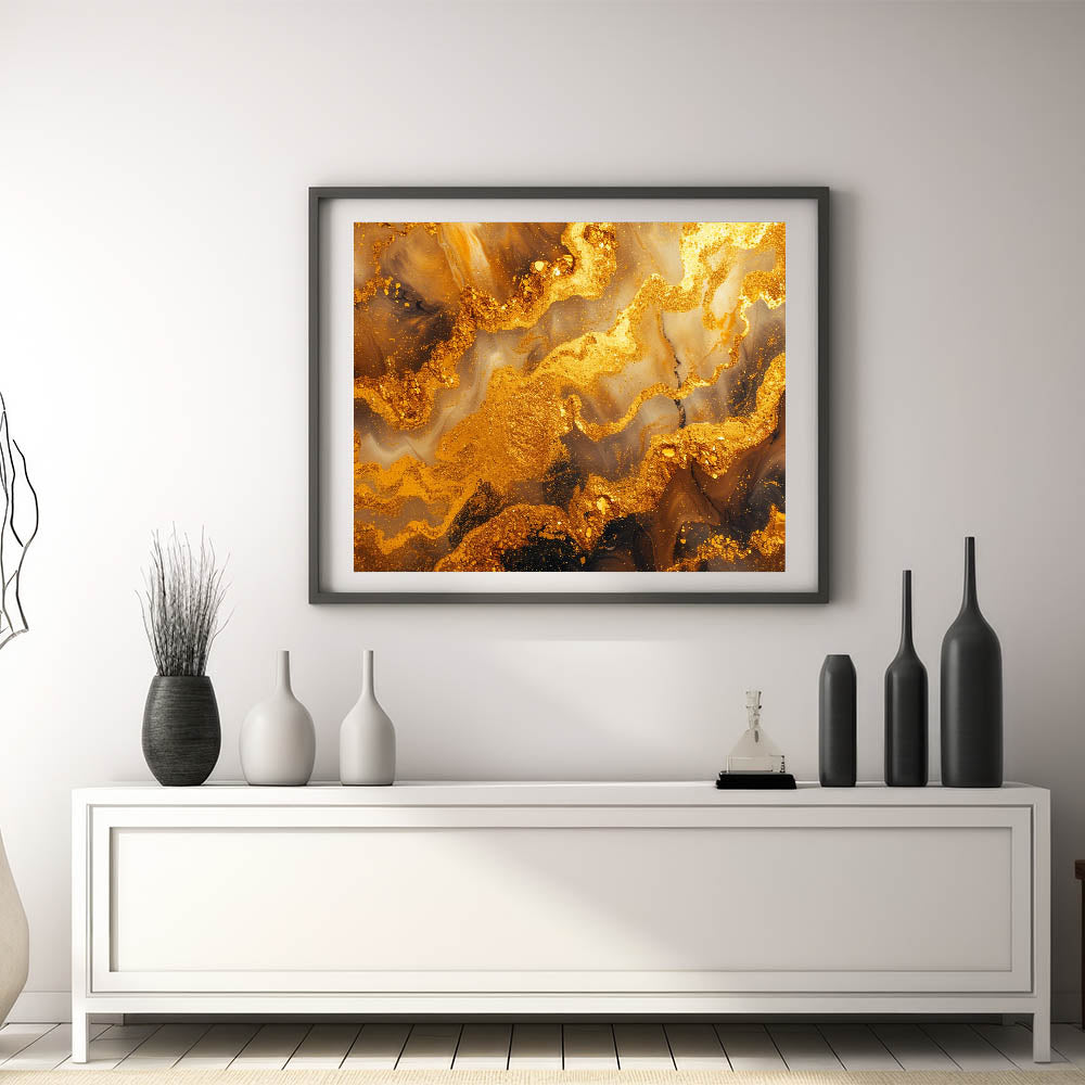 Indulge in the opulence of this glamorous gold abstract wall art, a perfect blend of metallic elegance and modern design. Featuring rich golden hues with stunning metallic textures, this luxurious art piece adds a bold and sophisticated flair to any space. Ideal for decorating living rooms, bedrooms, or office spaces, this artwork captures the essence of chic glam decor, making it a striking focal point in any interior.