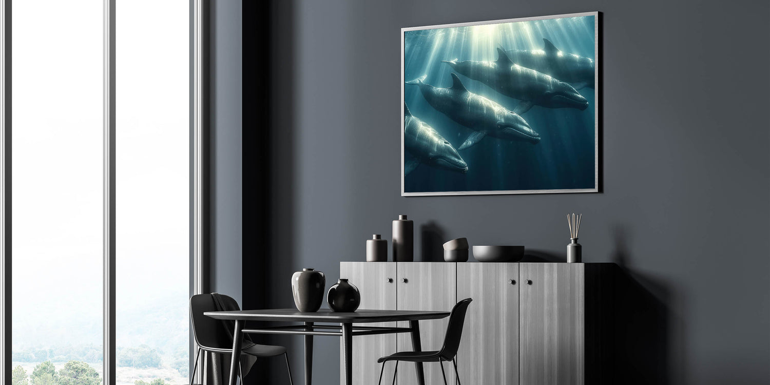 Part of our exclusive glam wall art collection, this artwork is designed to elevate your space with sophisticated and opulent beauty. The whales symbolize grace and depth, making this a stunning piece for ocean lovers and glam enthusiasts alike.