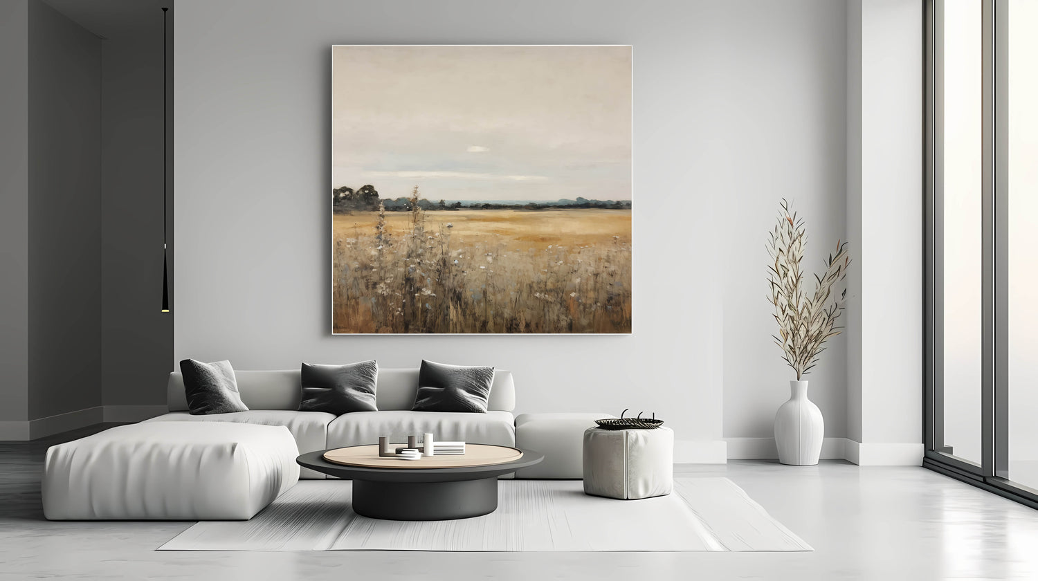 Capture the timeless beauty of vintage landscapes with this stunning countryside scene. Featuring golden fields stretching under a vast sky, this artwork embodies nostalgic scenery and natural vistas, evoking the warmth and tranquility of a historic rural setting. The soft brushstrokes and muted color palette bring classic elegance with retro landscapes, making it a perfect addition to any space.