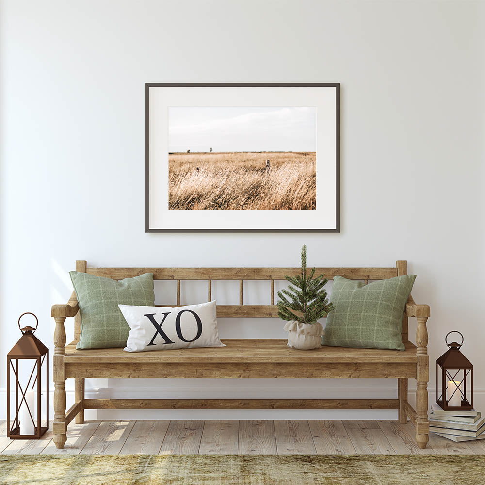 Embrace the beauty of wide-open spaces with this serene golden grass field farmhouse wall art. Featuring tall, windswept grasses gently moving in the breeze, this artwork captures the peaceful essence of rural life. The soft, golden tones and minimalistic composition make it perfect for anyone looking to bring a sense of calm and natural beauty into their home.