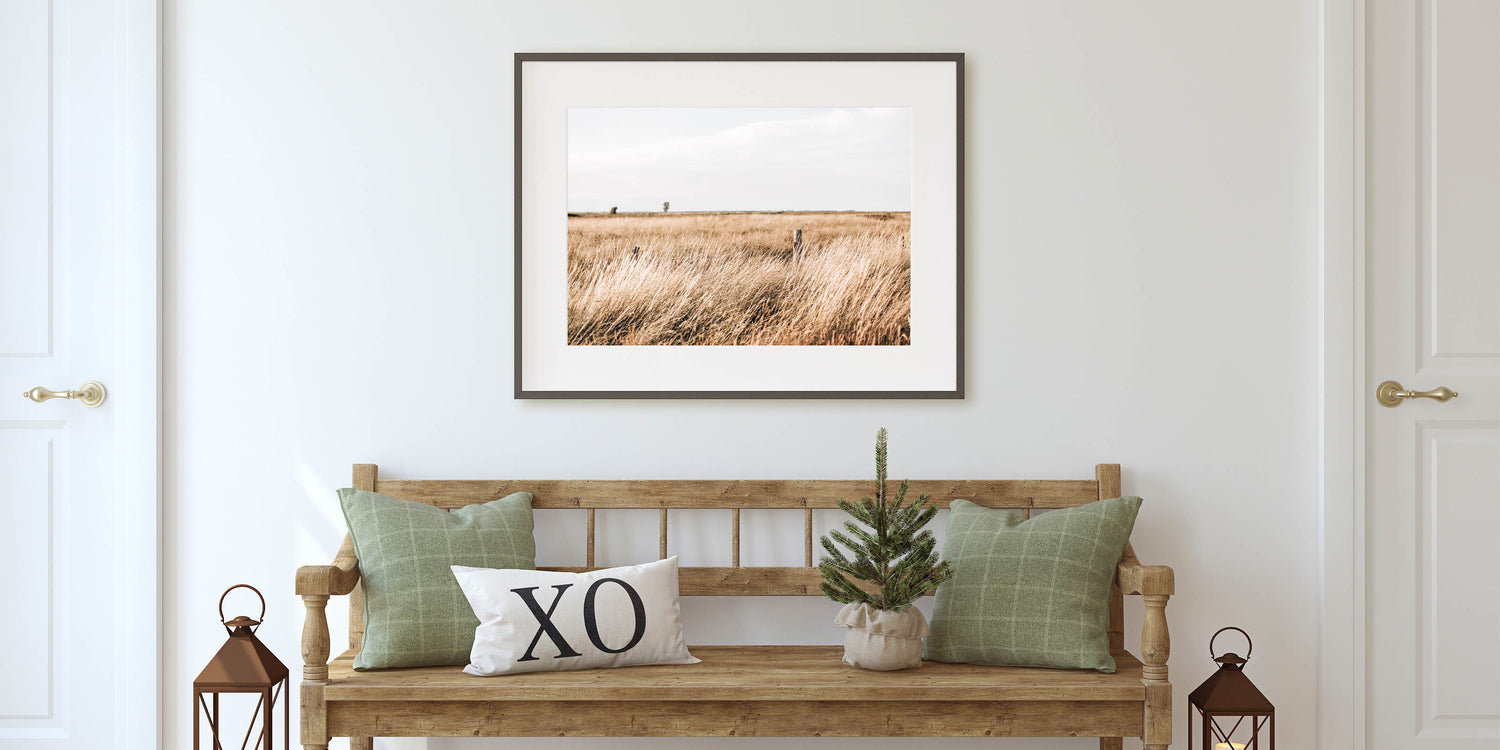 • Minimalist golden grass field design perfect for rustic farmhouse decor