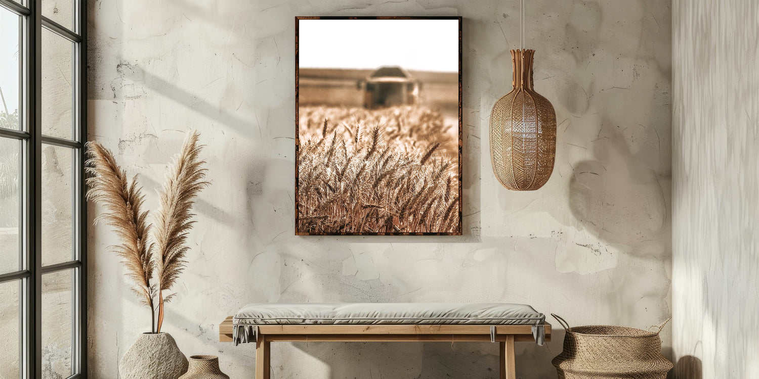 Golden Wheat Field Art - Rustic Farmhouse Wall Decor Print