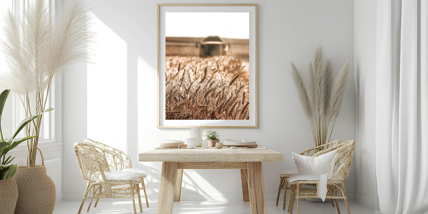 Whether displayed in a kitchen, dining room, or living area, this golden wheat field artwork adds warmth and a sense of rural beauty to your home. Its timeless appeal and rustic charm make it the perfect addition to any farmhouse-inspired space.