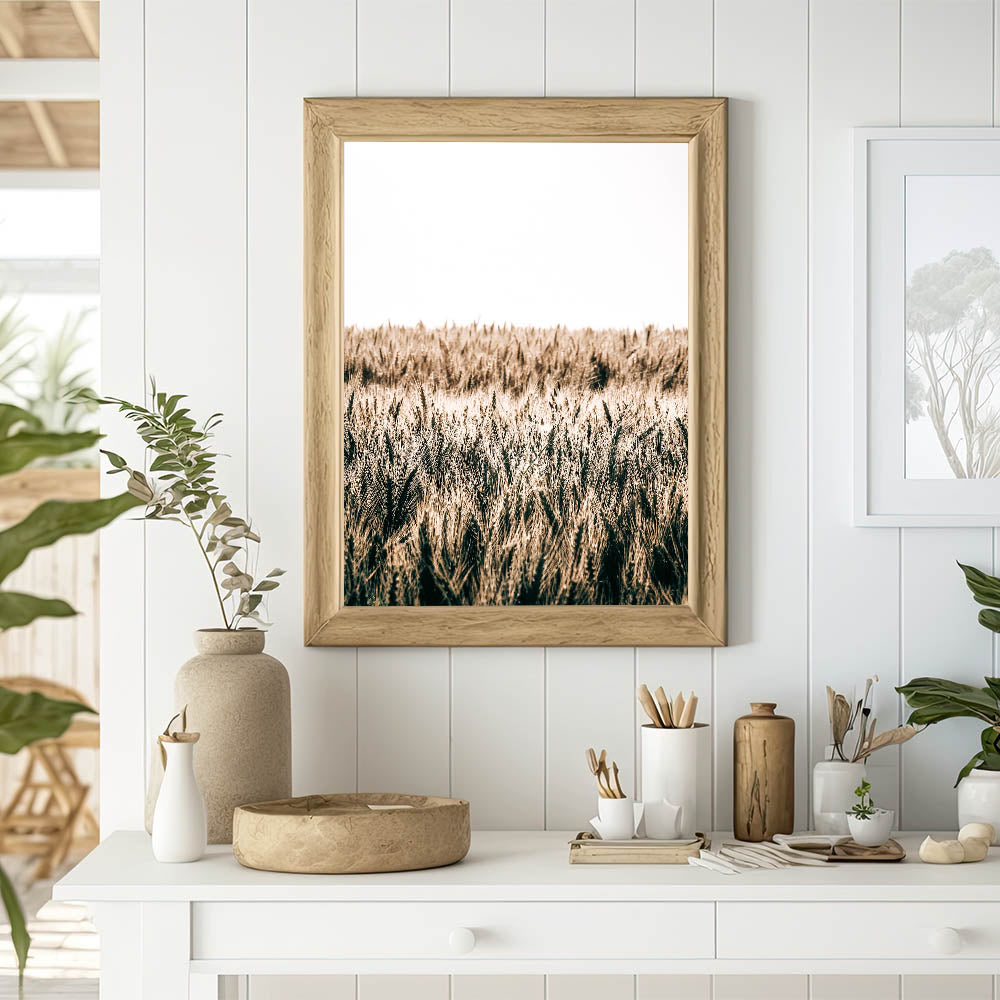 Add a touch of nature's beauty to your space with this breathtaking Golden Wheat Field Farmhouse Wall Art. This piece showcases a serene expanse of golden wheat swaying under the sun, perfectly capturing the essence of country living style. The natural tones and textures evoke a peaceful, calming atmosphere, making it a wonderful addition to any home with a rustic charm. This artwork embodies a vintage-inspired aesthetic that fits seamlessly into farmhouse style wall decor.