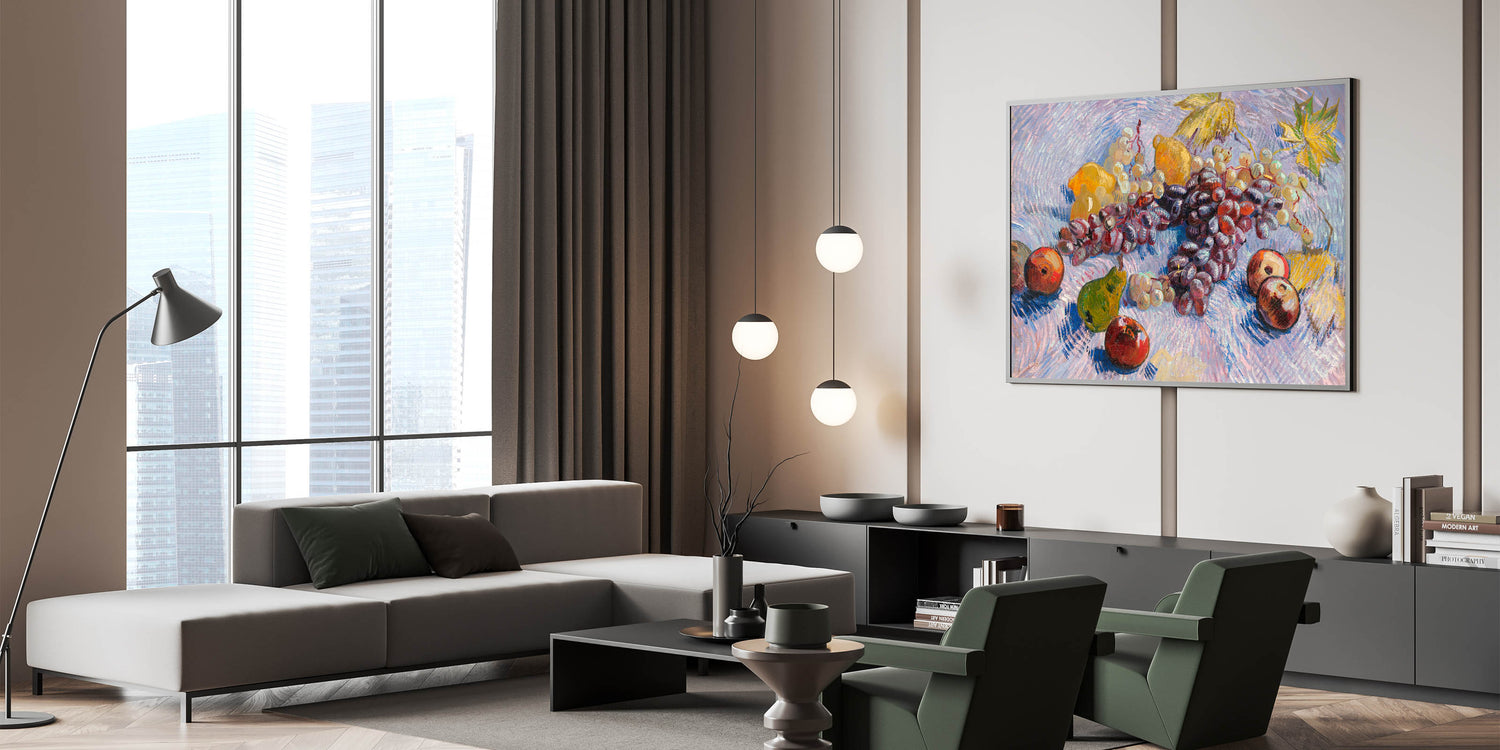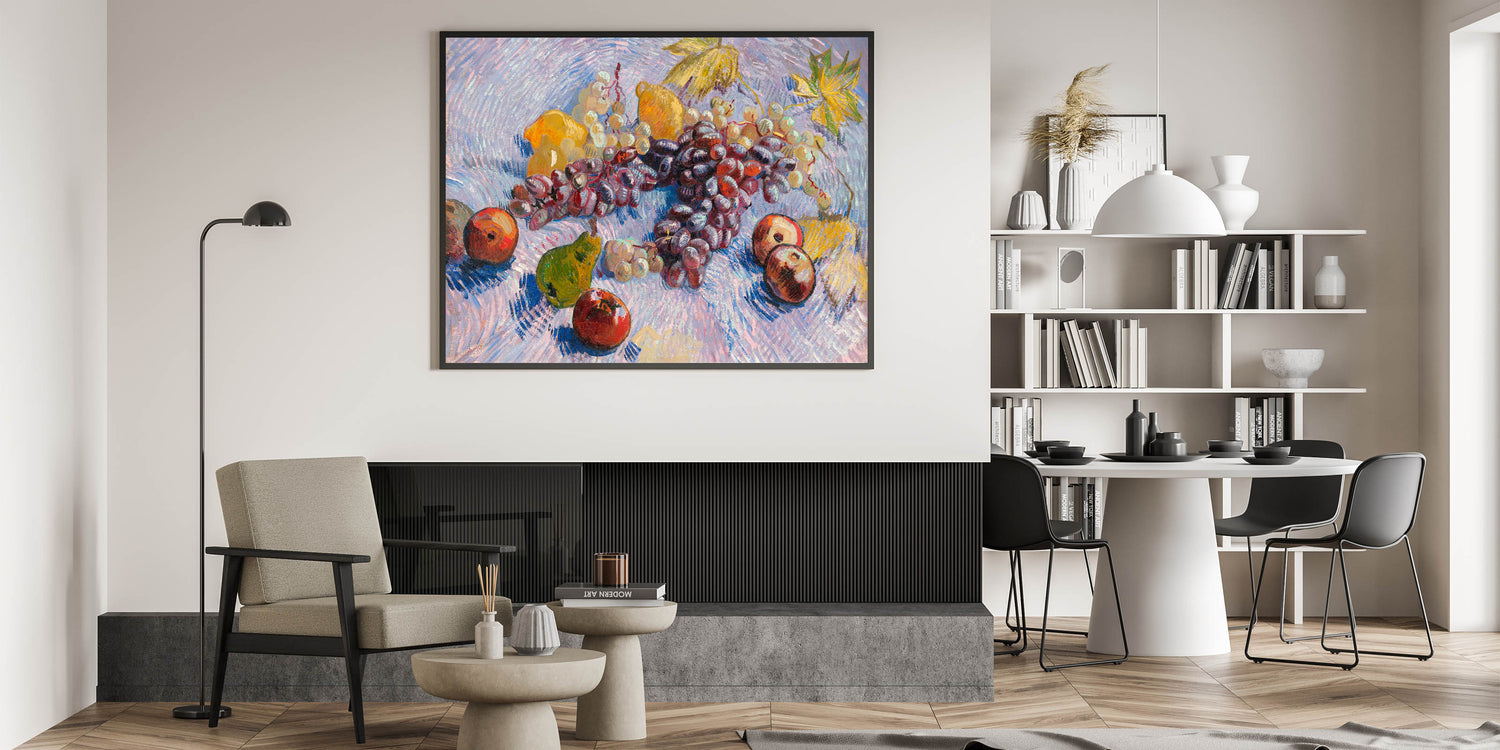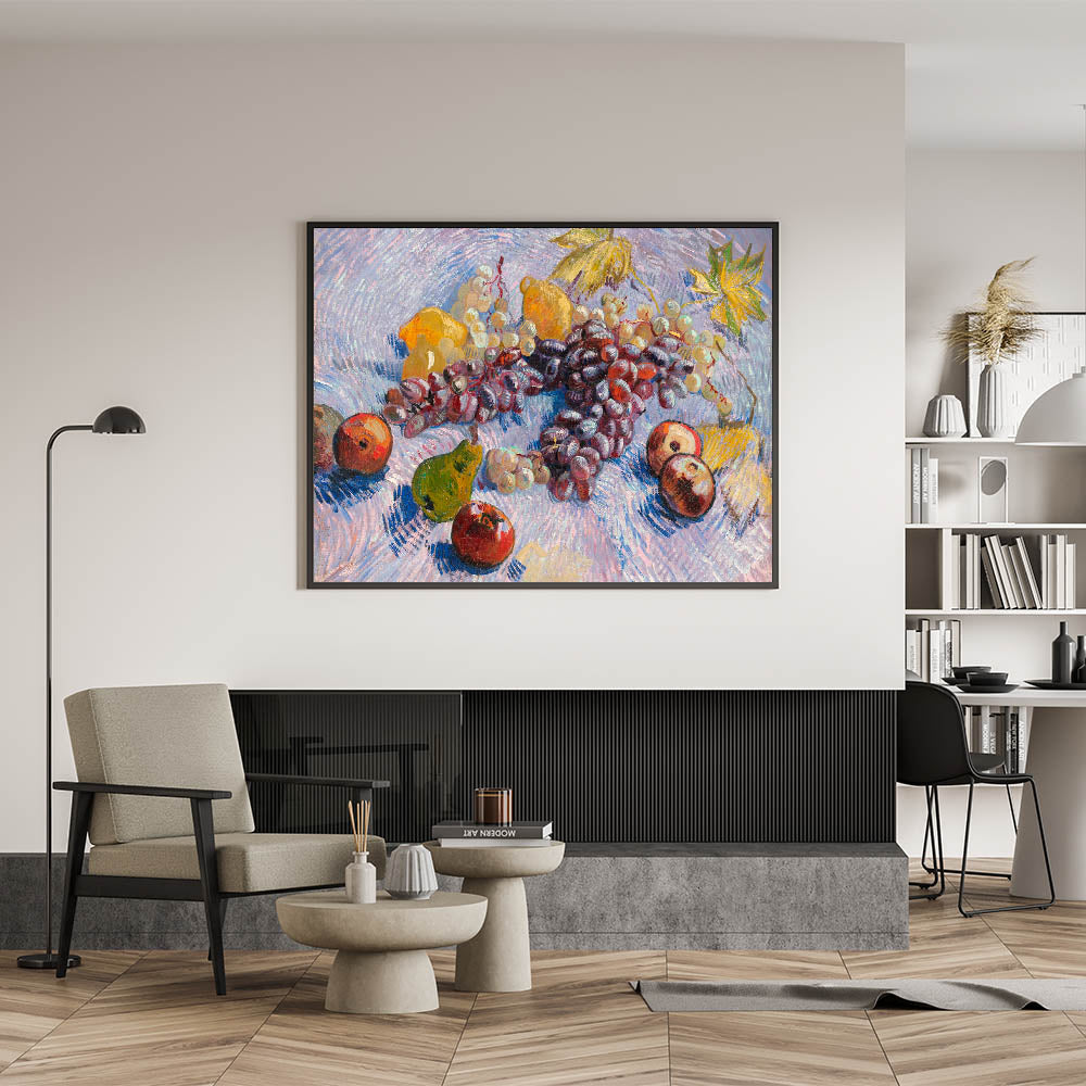 - High-quality reproduction of Vincent van Gogh’s "Grapes, Lemons, Pears, and Apples"