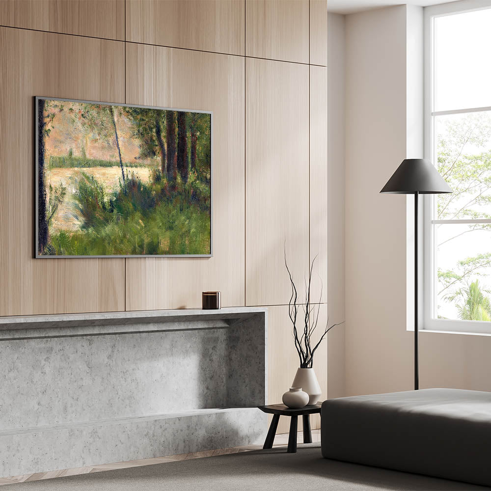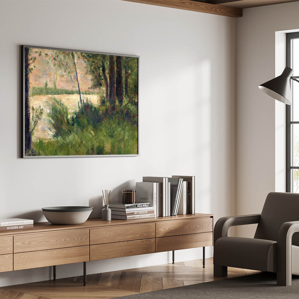 Grassy Riverbank by Seurat: Peaceful Impressionist Landscape Wall Art
