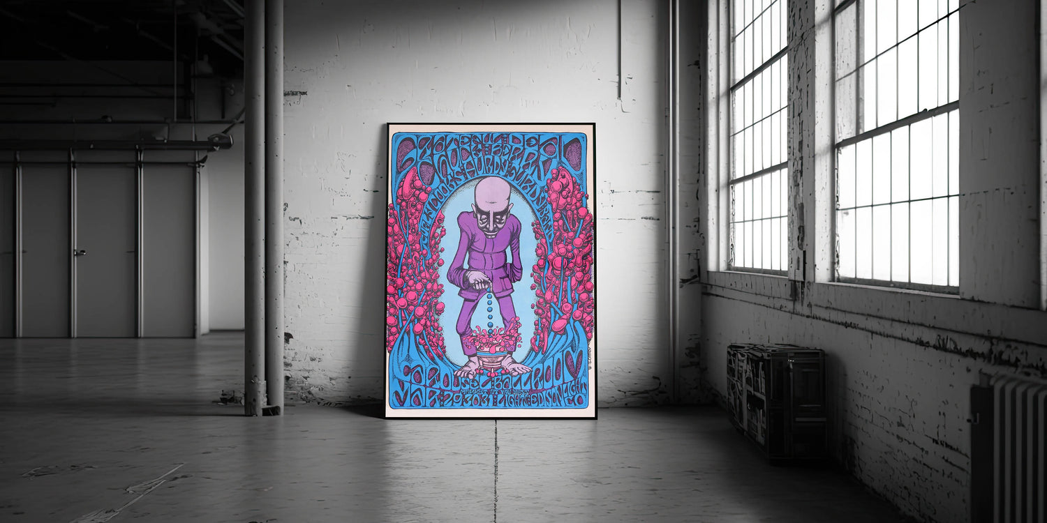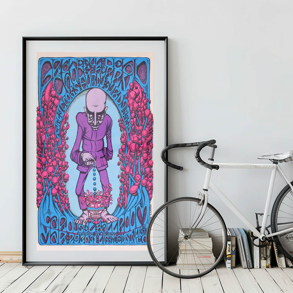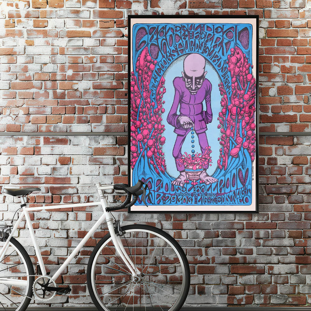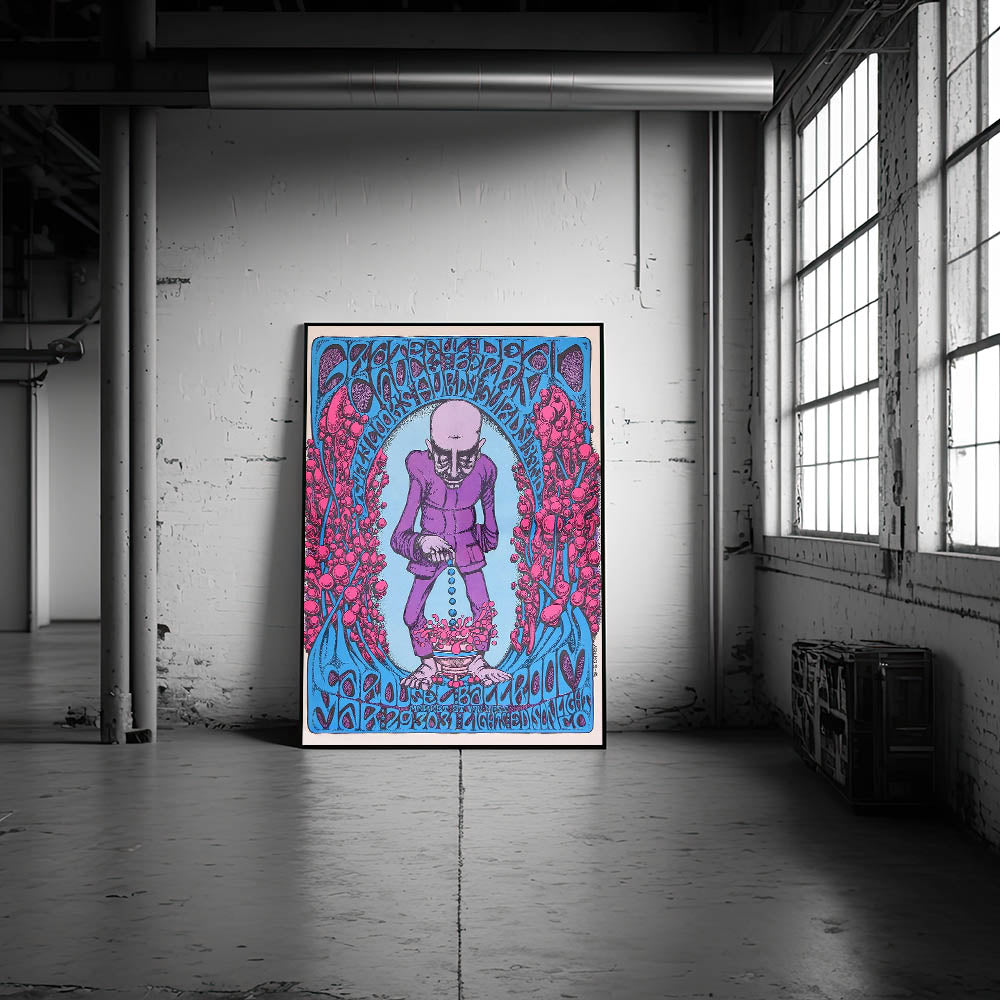 Immerse yourself in the psychedelic era with this Grateful Dead Retro Wall Art, a Vintage Print that embodies the bold, surreal artistry of the 1960s music scene. Featuring an intricate hand-drawn design with vibrant blues, purples, and pinks, this Retro Poster Art captures the essence of Classic Retro Style and counterculture aesthetics. A must-have for Deadheads, art lovers, and collectors of Nostalgic Art Prints.