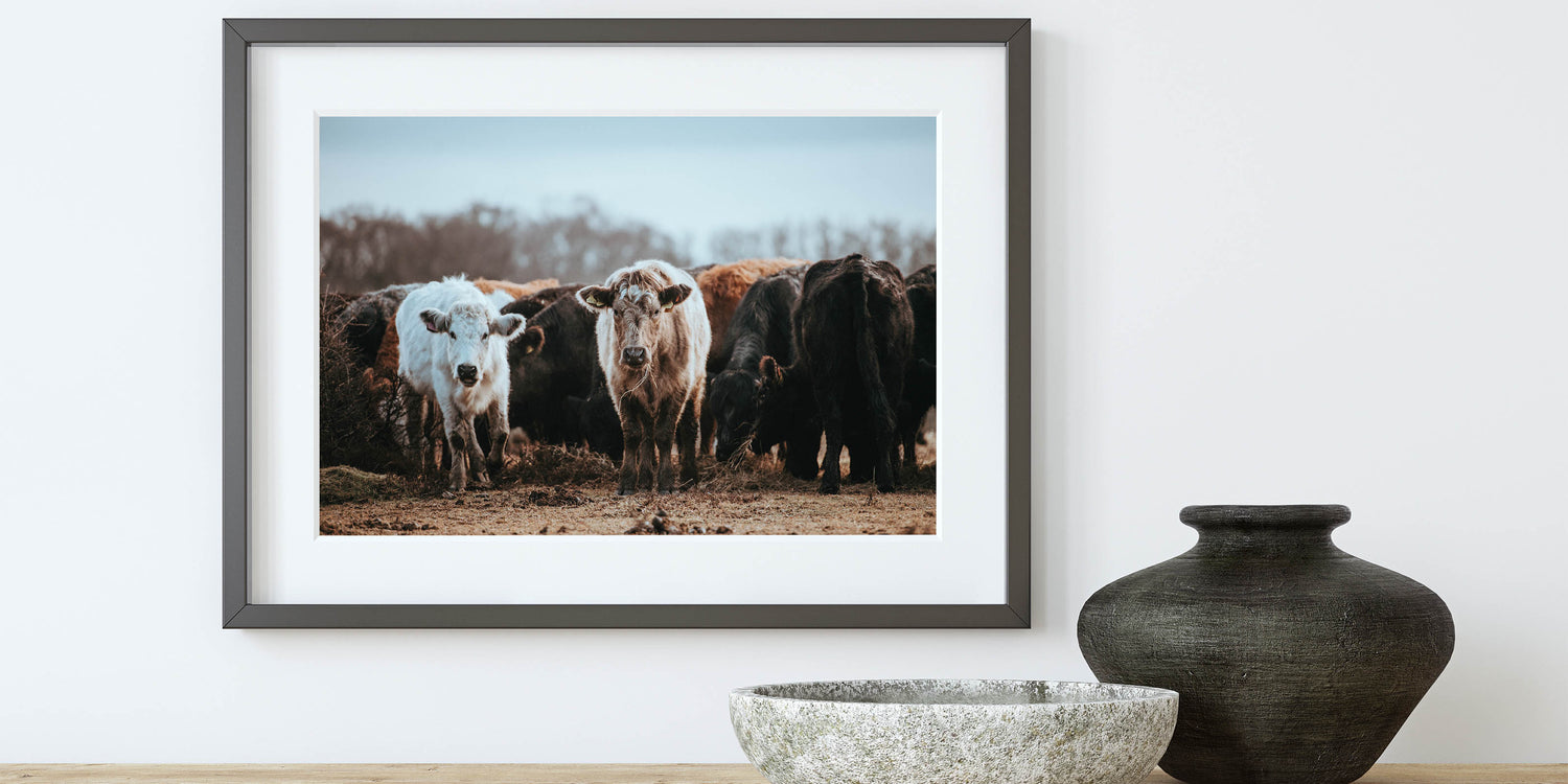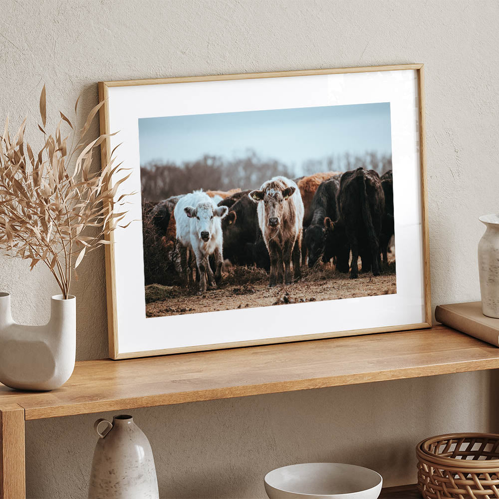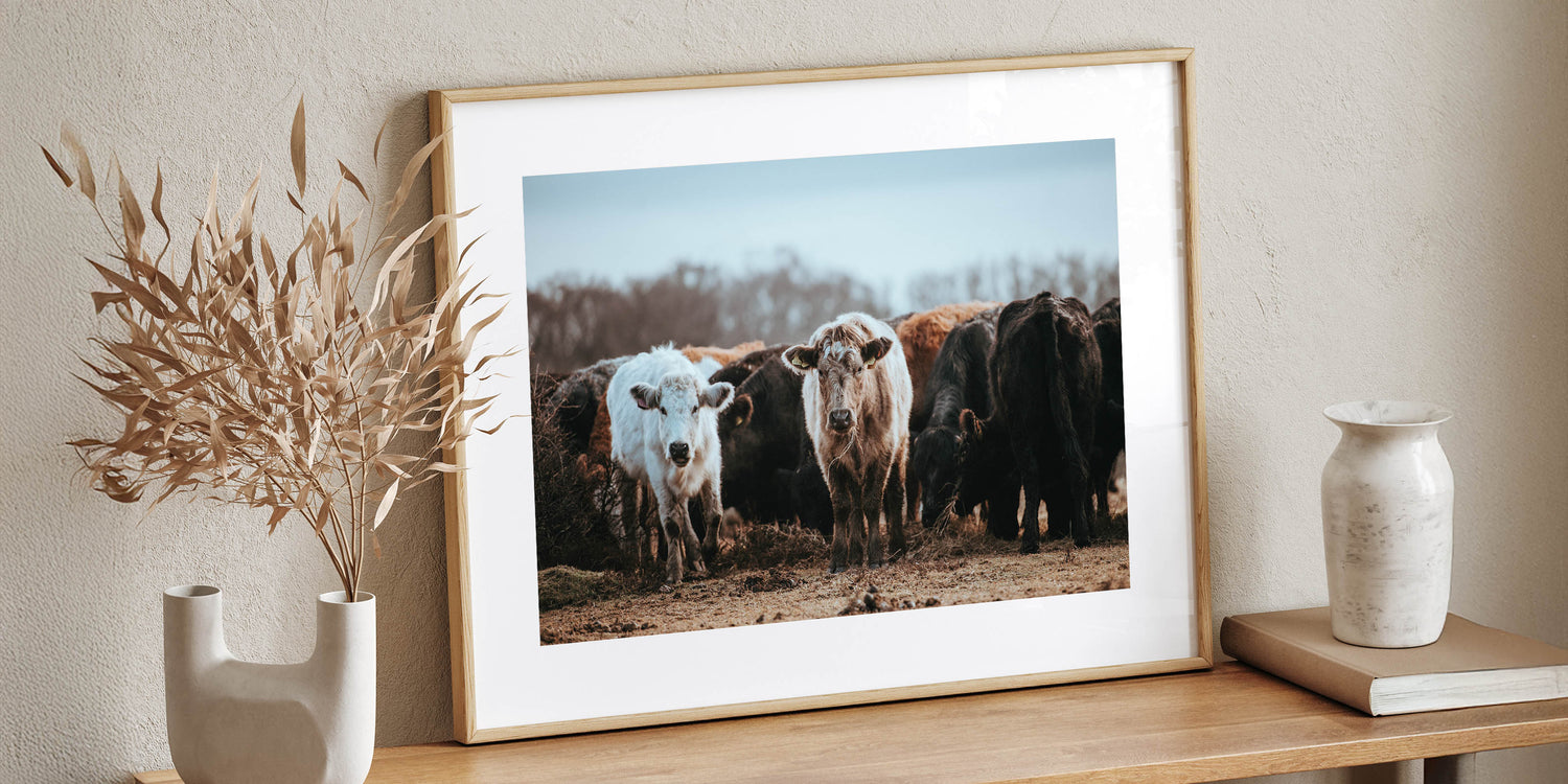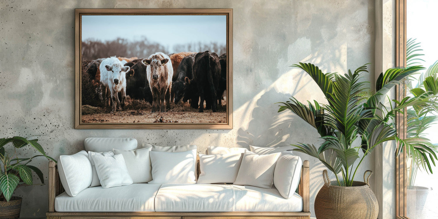 This artwork is ideal for anyone who loves the beauty of rural landscapes and animals. Whether displayed on its own or as part of a gallery wall, this grazing cattle wall art will bring warmth and a touch of the countryside into any room.