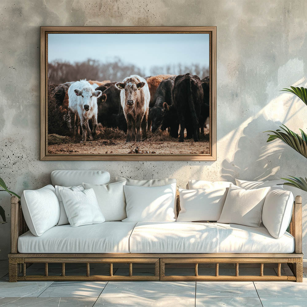 Bring the charm of rural life into your home with this beautiful grazing cattle farmhouse wall art. Featuring a group of cattle peacefully grazing in the open, this artwork captures the simplicity and warmth of country living. The natural earthy tones and detailed depiction of the cattle make this piece a perfect addition to any farmhouse or rustic-style decor, evoking feelings of calm and connection with nature.
