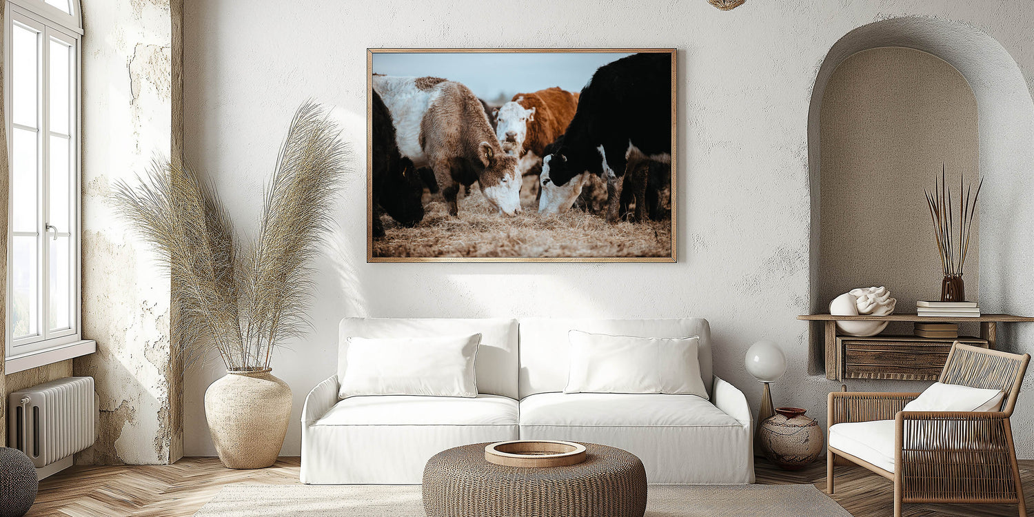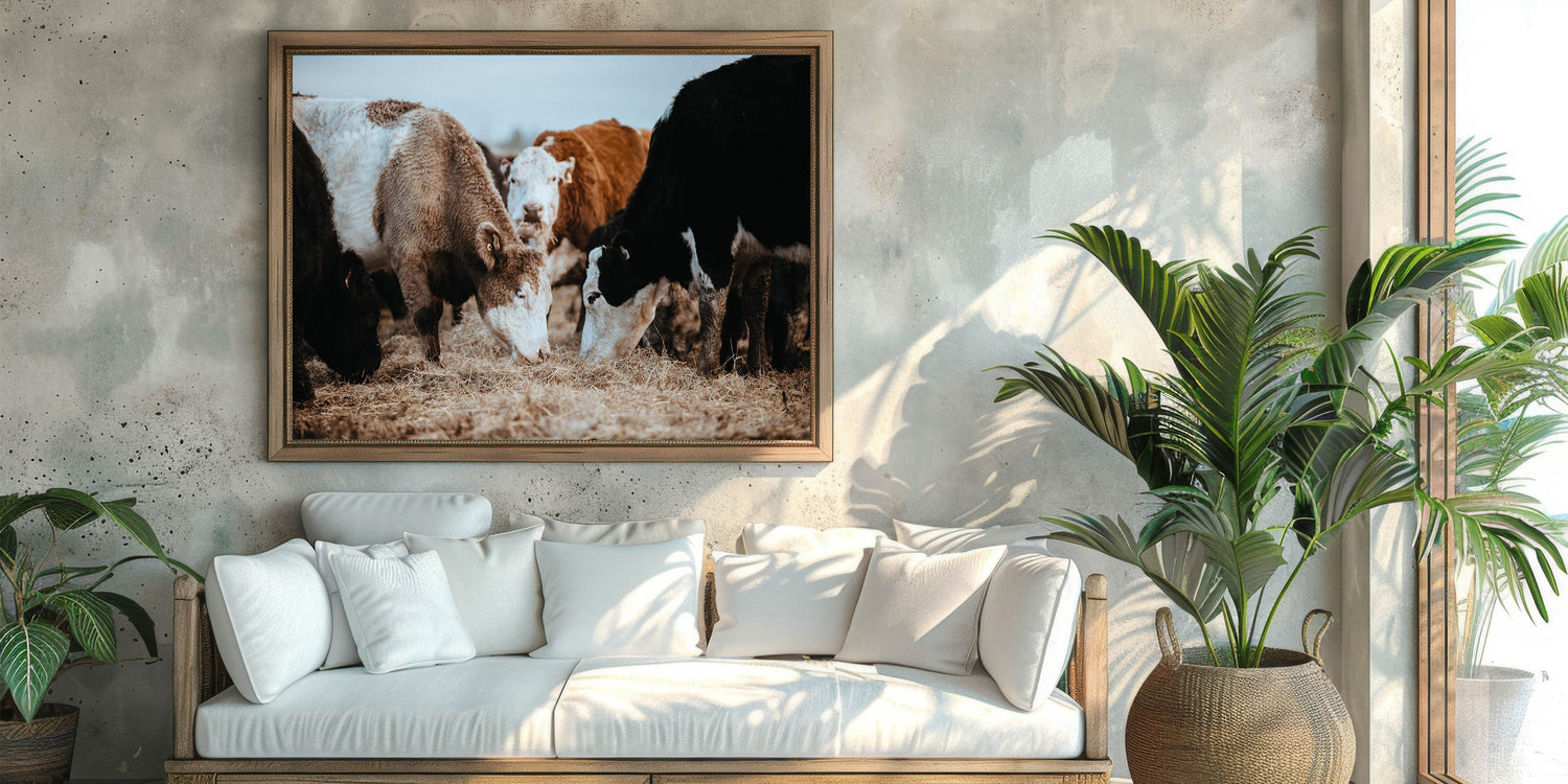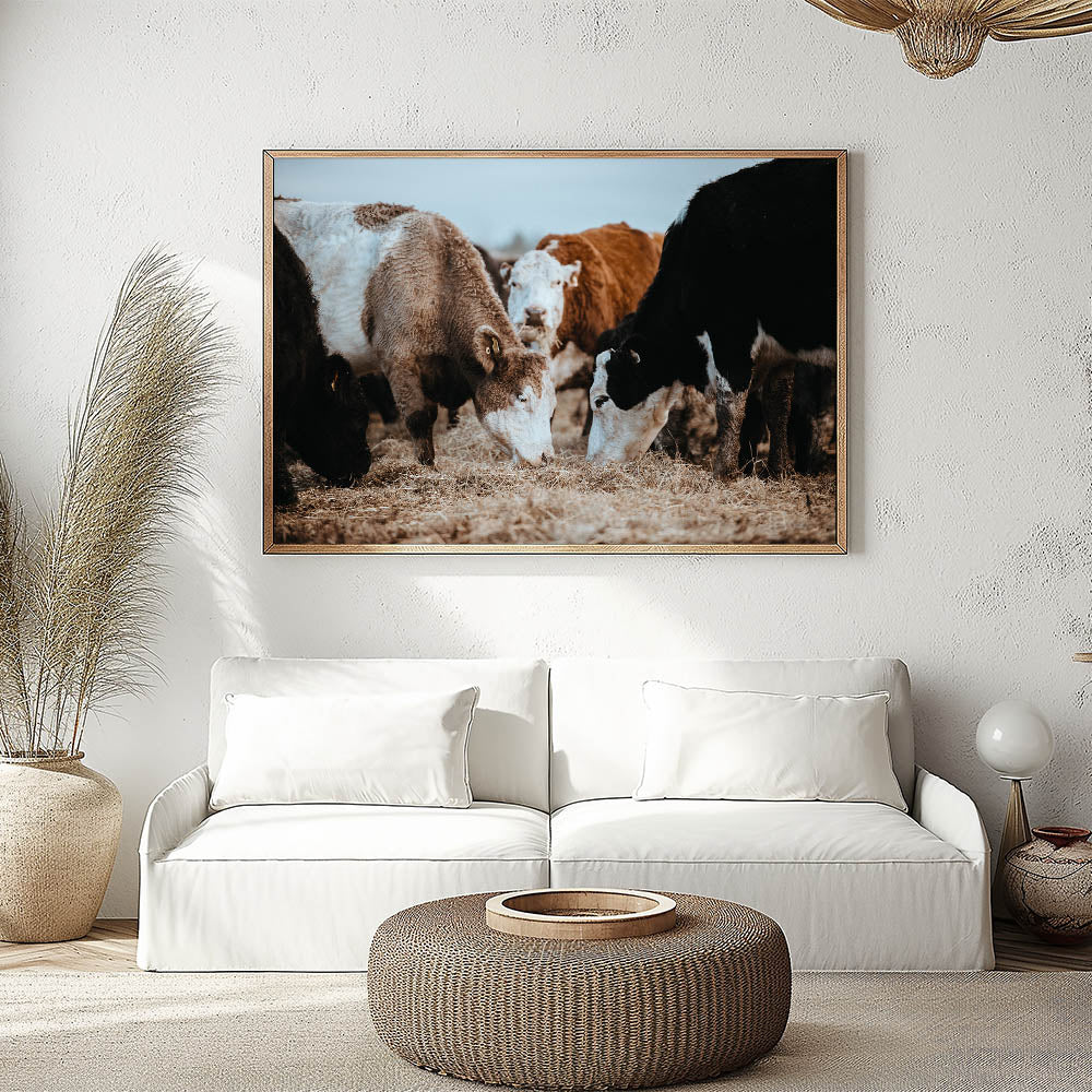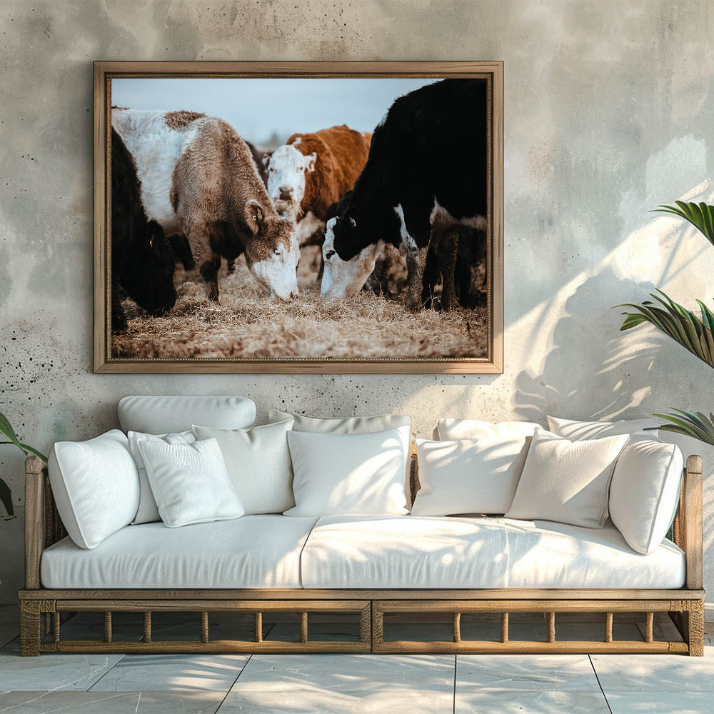 This artwork is perfect for anyone who loves the simplicity and beauty of rural life. Whether displayed on its own or as part of a gallery wall, this grazing cattle wall art will bring warmth and a touch of the countryside into your space.
