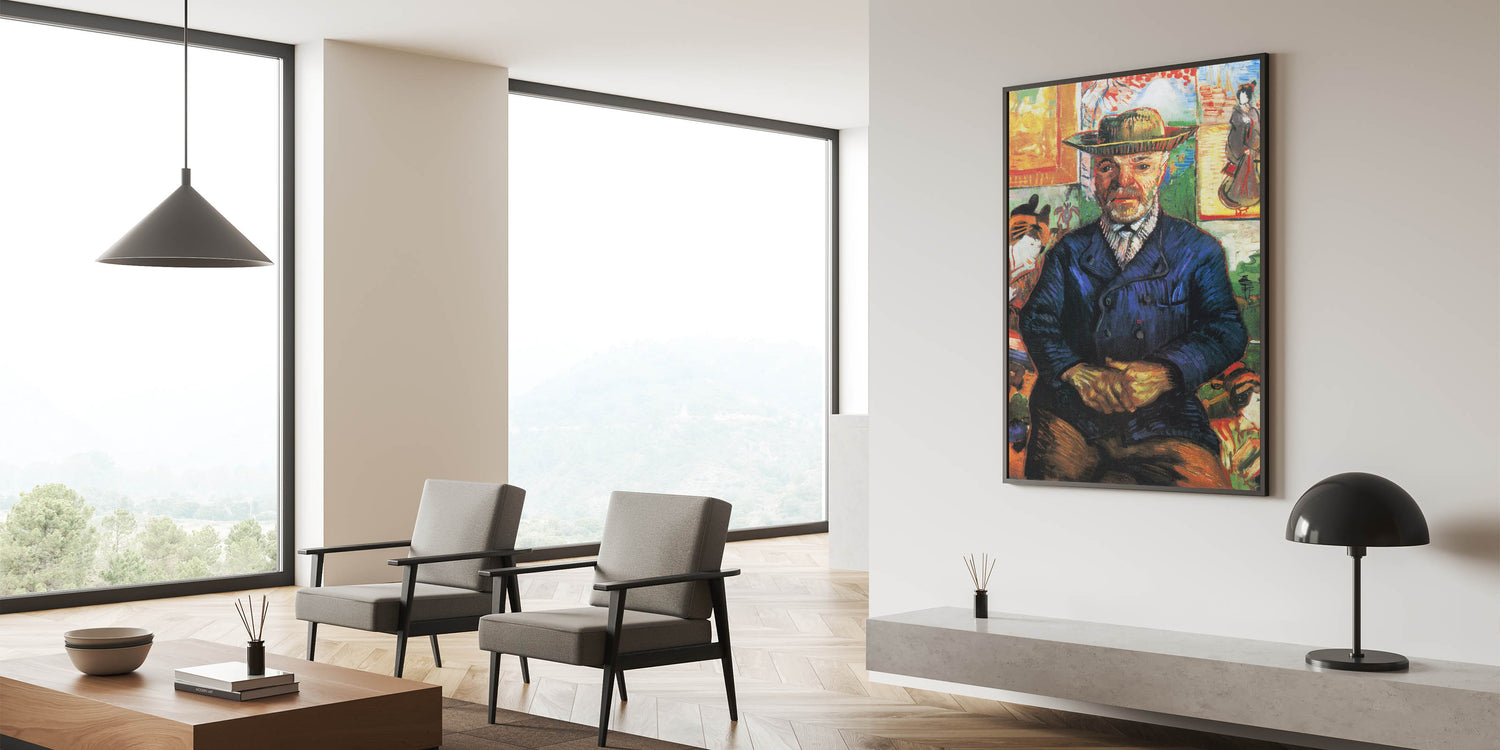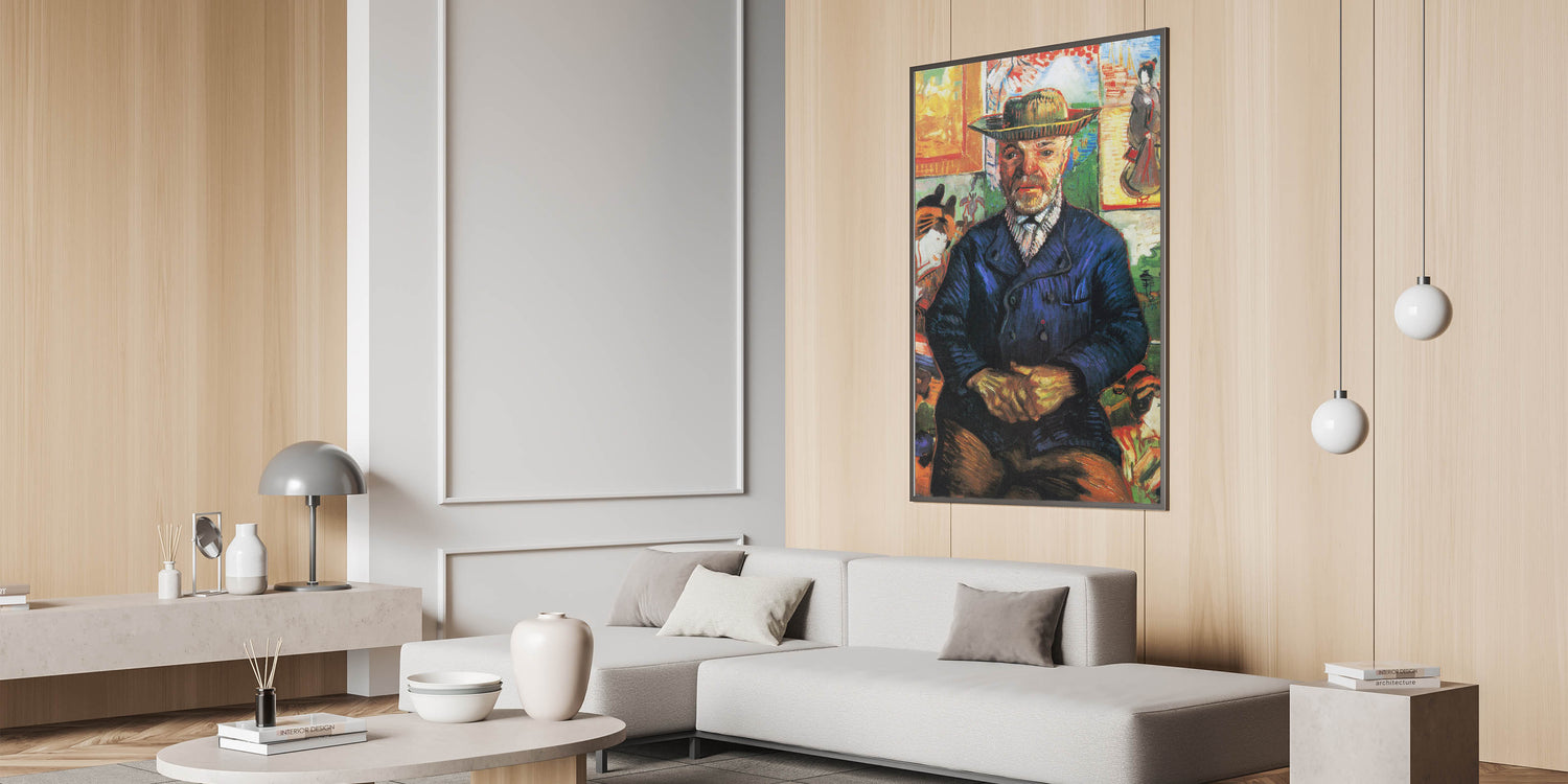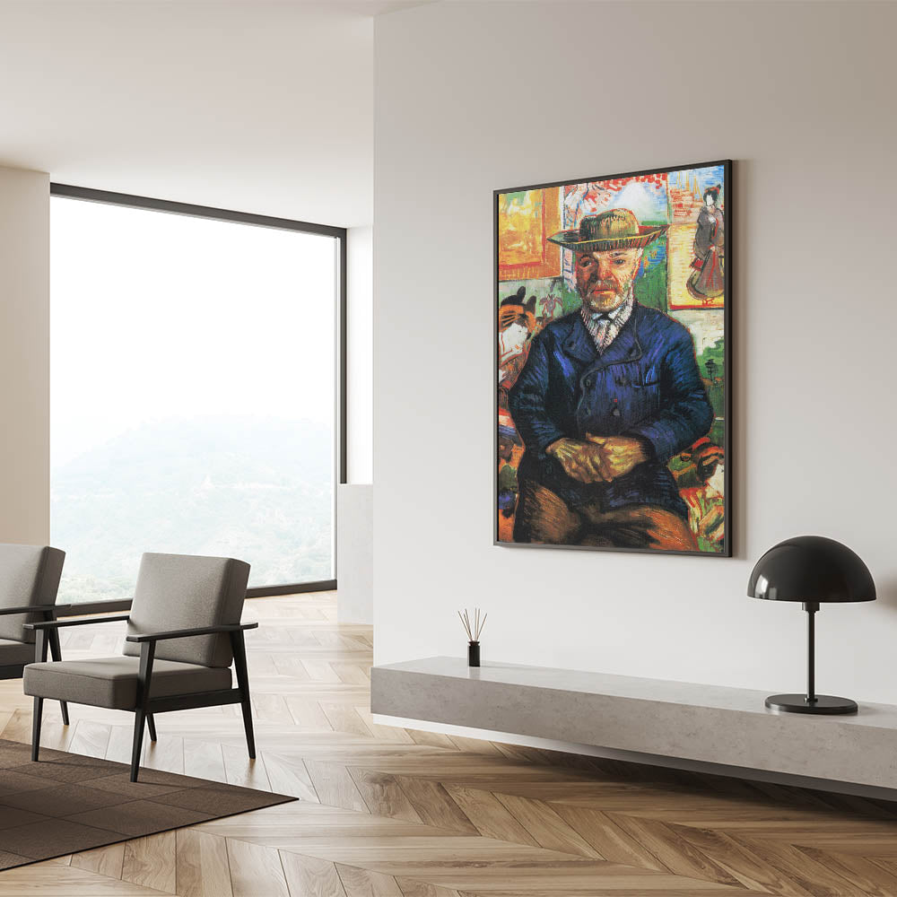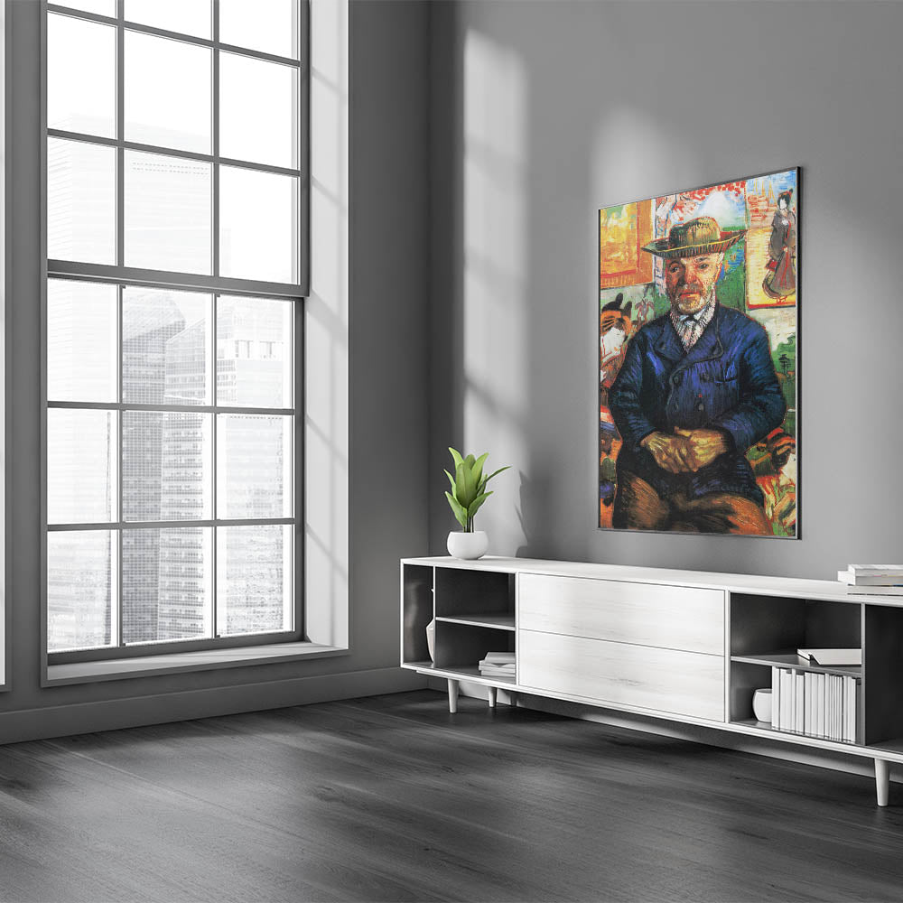 Enhance your space with Vincent van Gogh's "Portrait of Père Tanguy," a vibrant and deeply expressive masterpiece of French Impressionism. This iconic painting captures Père Tanguy, a prominent figure in the art world, surrounded by colorful Japanese prints and bright, expressive hues. Van Gogh’s intricate brushwork and bold palette create a stunning visual narrative that bridges cultures and celebrates the Impressionist movement.