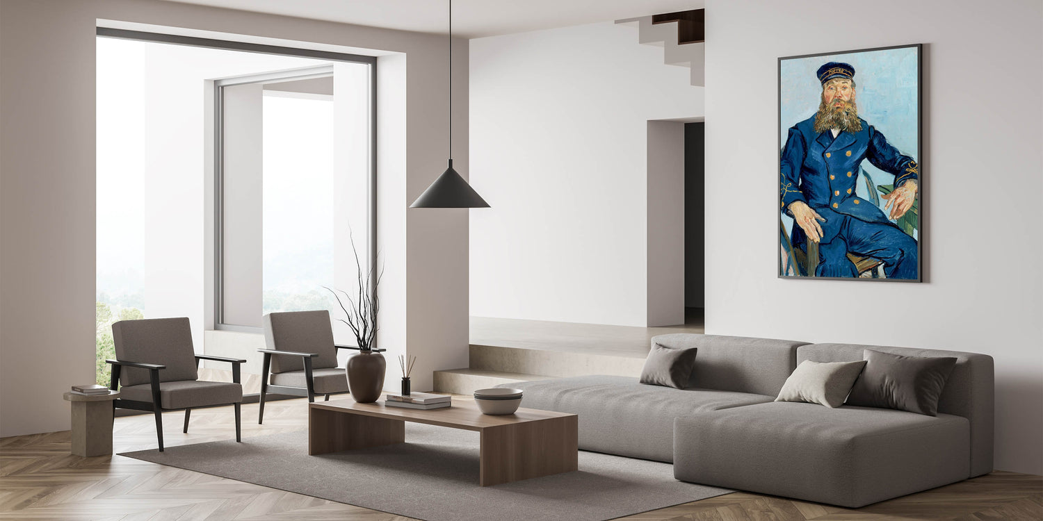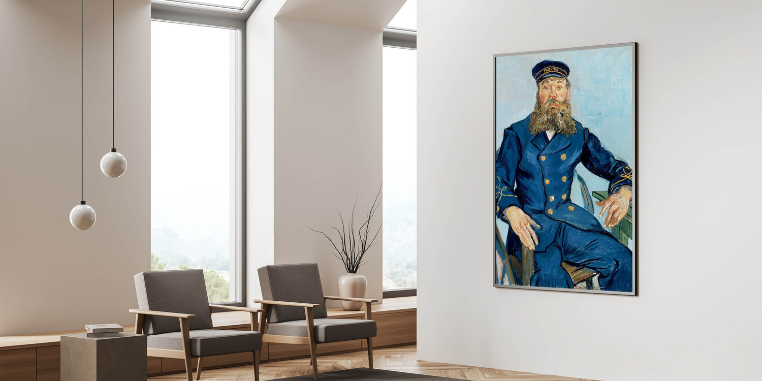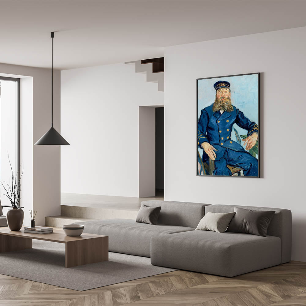 Celebrate the vibrancy and charm of Vincent van Gogh's "Portrait of the Postman Joseph Roulin." This striking masterpiece showcases the postman, a close friend of van Gogh, dressed in his formal uniform. With vivid blues, expressive brushstrokes, and a detailed depiction of Roulin’s warm demeanor, this painting exemplifies the unique brilliance of Impressionist art.