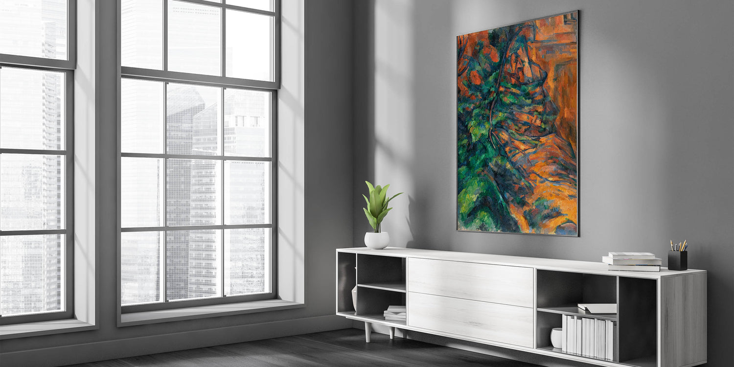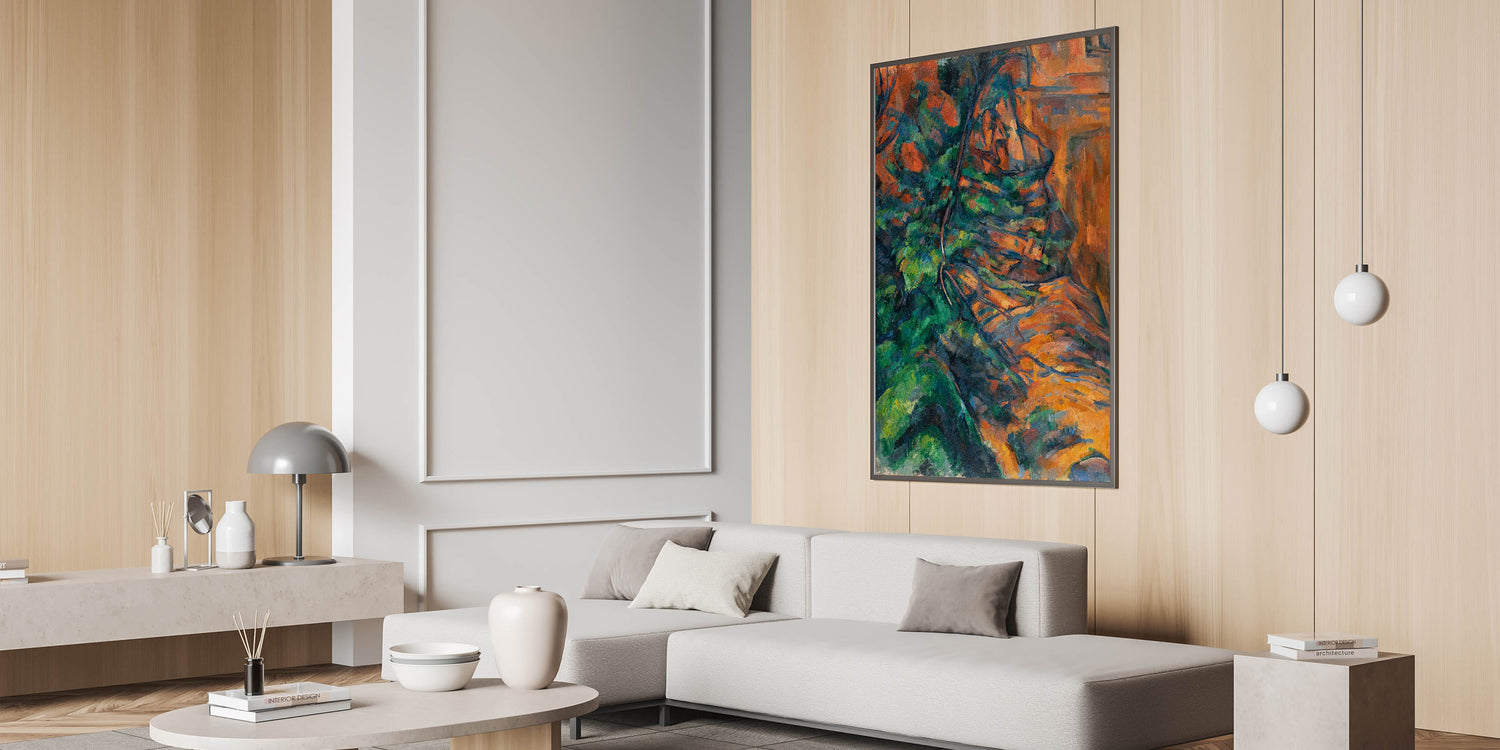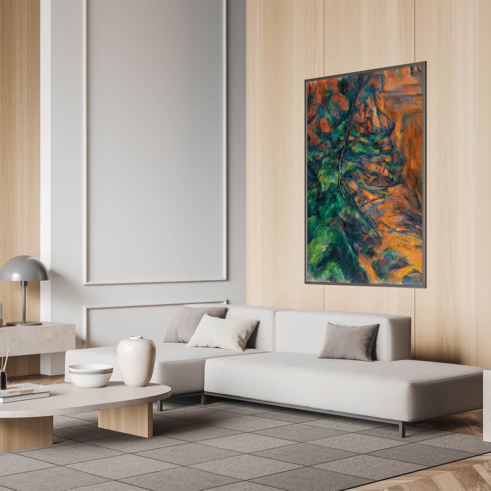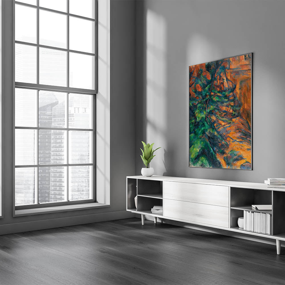 Immerse yourself in the vibrant and textured world of Impressionism wall art with "Rocks and Branches" by Paul Cézanne. This stunning landscape showcases Cézanne’s masterful use of bold colors and dynamic brushstrokes to depict the interplay of nature's rugged beauty and intricate details. The earthy tones and lush greens create a harmonious balance, capturing the essence of the Impressionist landscape style.