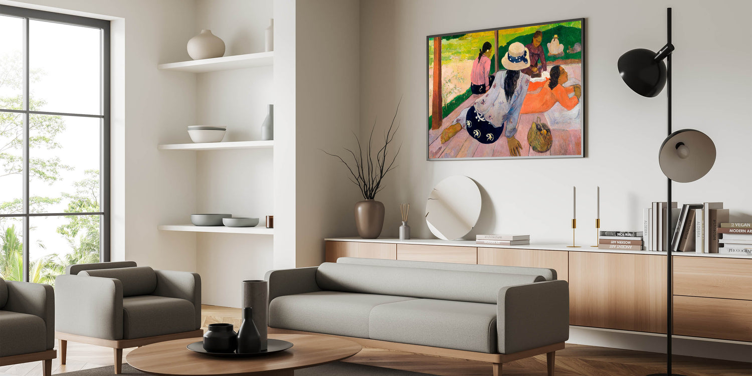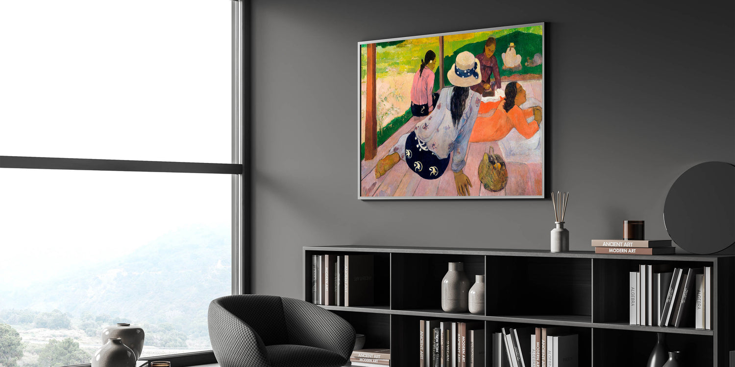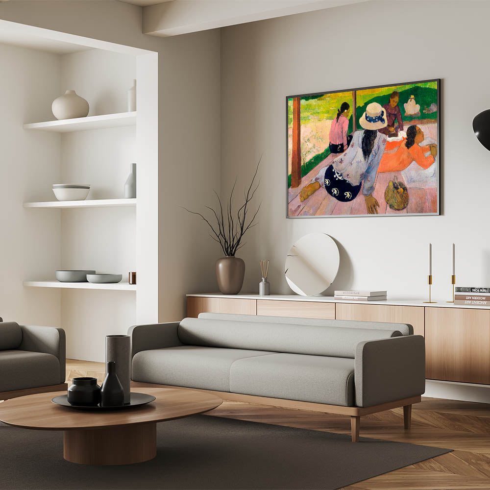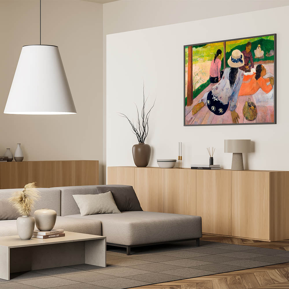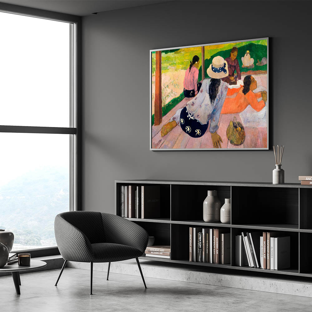 Bring the essence of Tahitian life into your home with Paul Gauguin’s "The Siesta," a stunning work created between 1892 and 1894. This masterpiece captures a serene moment of rest and relaxation, featuring a group of women in vibrant colors, reclining on a sunlit wooden deck. Gauguin’s signature bold palette and fluid forms showcase his deep connection to Tahitian culture and his post-Impressionist style.