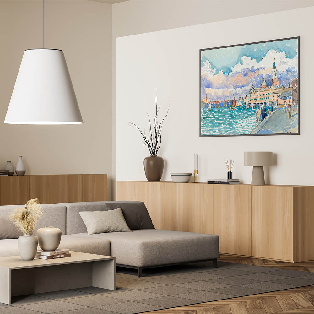 Capture the timeless charm of Venice with Henri Edmond Cross’s masterpiece, "Venice." This Impressionist cityscape brings the iconic canals and grand architecture of Venice to life, depicted with delicate brushwork and vibrant hues. The interplay of soft pinks, blues, and turquoise captures the serene beauty of the water and sky, making this artwork a stunning centerpiece for any space.