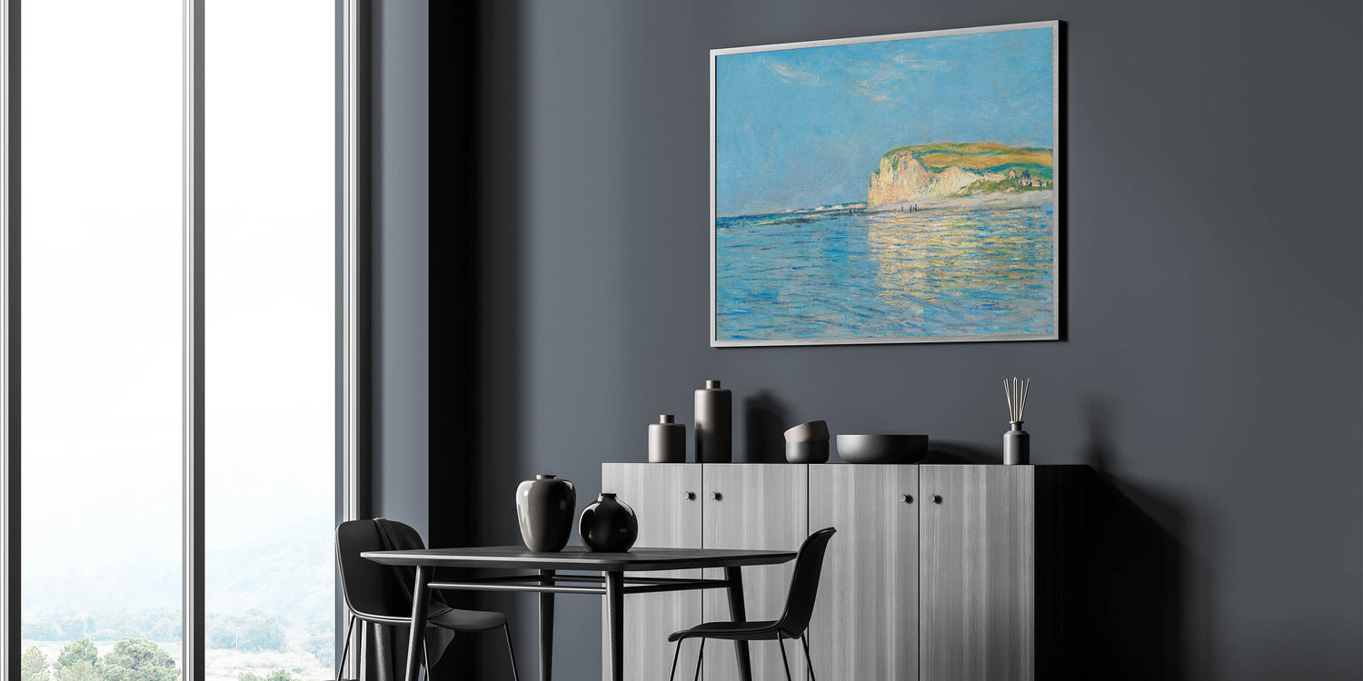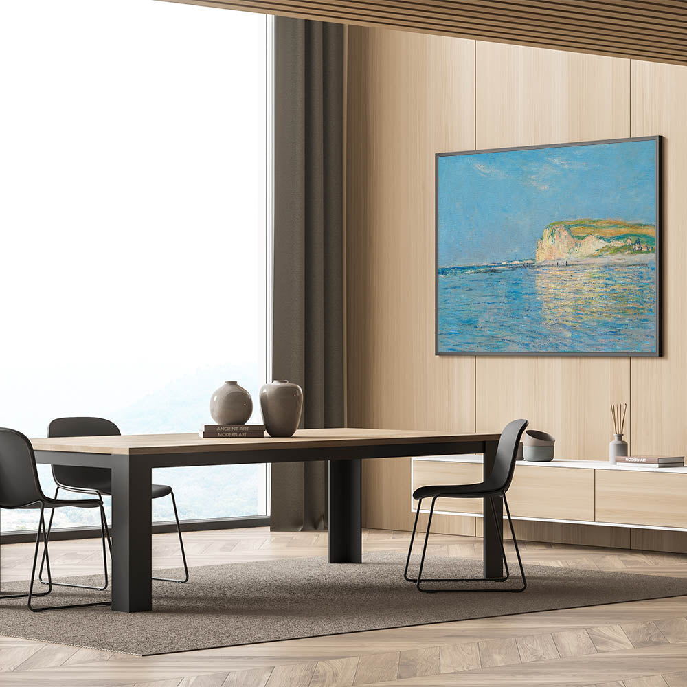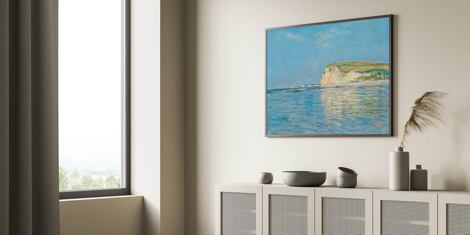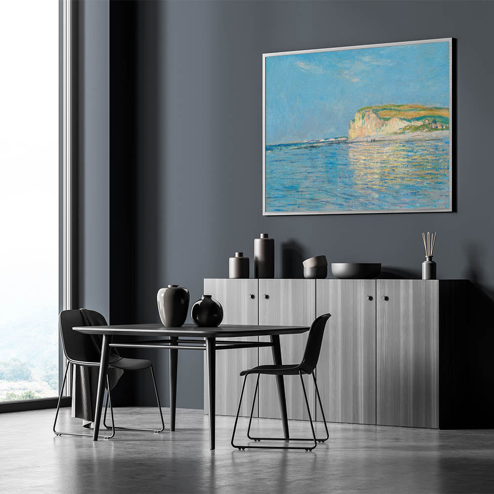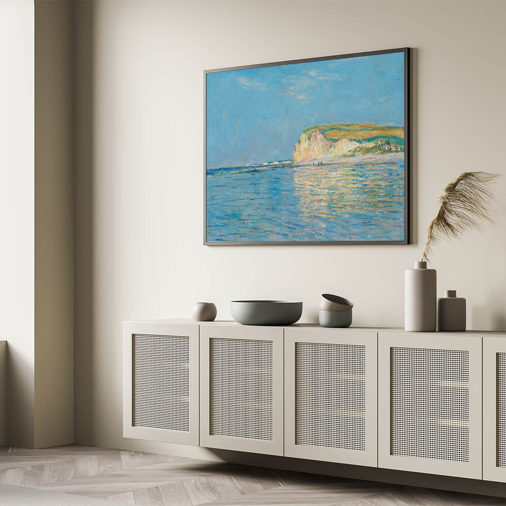 Experience the calming beauty of the coast with Claude Monet's Low Tide at Pourville. This Impressionist wall art captures the serene French shoreline, where gentle waves meet sunlit cliffs under a vast blue sky. Monet’s signature brushstrokes and use of light bring the seascape to life, making it ideal for fans of famous Impressionist artists and coastal decor. Perfect for enhancing any space with a touch of tranquility, this artwork invites viewers to feel the cool breeze and hear the lapping waves.