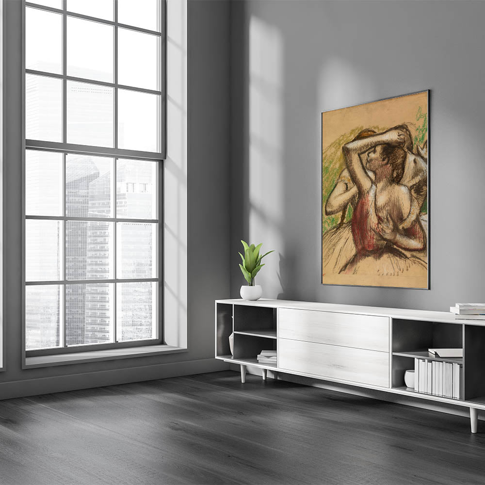 Bring the grace and elegance of ballet into your home with "Group of Dancers" by Edgar Degas. This Impressionist artwork beautifully captures the intimate, delicate moment of dancers preparing for their performance. Degas' masterful use of pastels creates soft, textured strokes, bringing depth and realism to the figures. The warm tones and dynamic lines of the dancers' forms make this piece a perfect addition for art lovers and fans of Impressionist style decor.