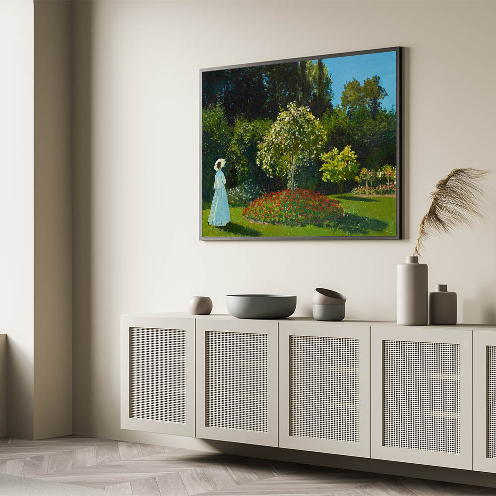 Impressionist Garden Scene - Monet's Lady in the Garden, Framed Print