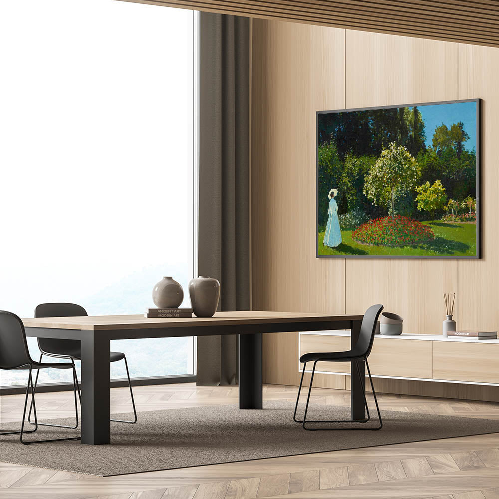 Bring the tranquility of nature into your space with this Impressionist wall art inspired by Claude Monet's Lady in the Garden. This painting captures a serene garden bathed in sunlight, with a lady in a white dress and parasol enjoying the greenery. Monet’s detailed brushwork and use of natural colors bring a sense of calm and beauty, making this artwork a stunning addition to any decor.