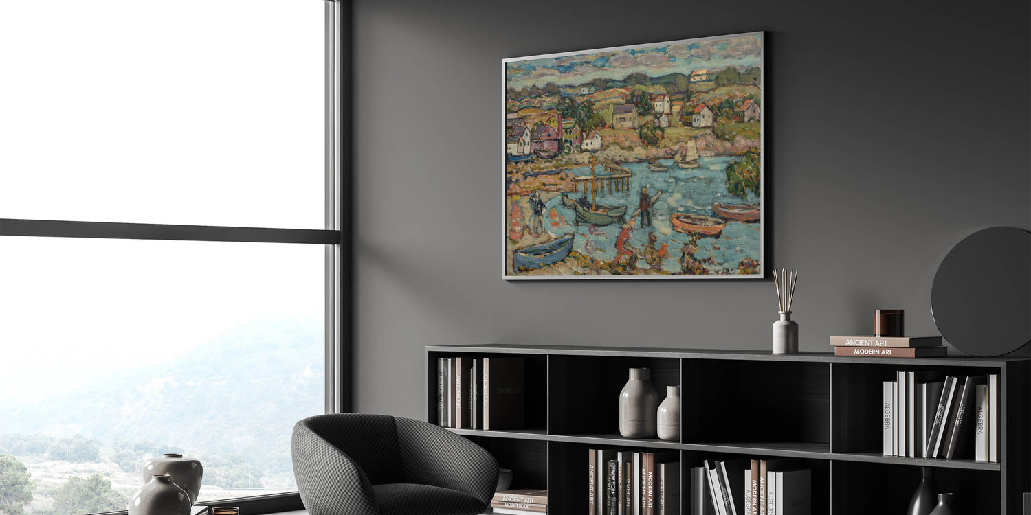 Add a touch of Impressionist charm to your decor with this beautiful harbor scene, capturing the joy and tranquility of a seaside village.