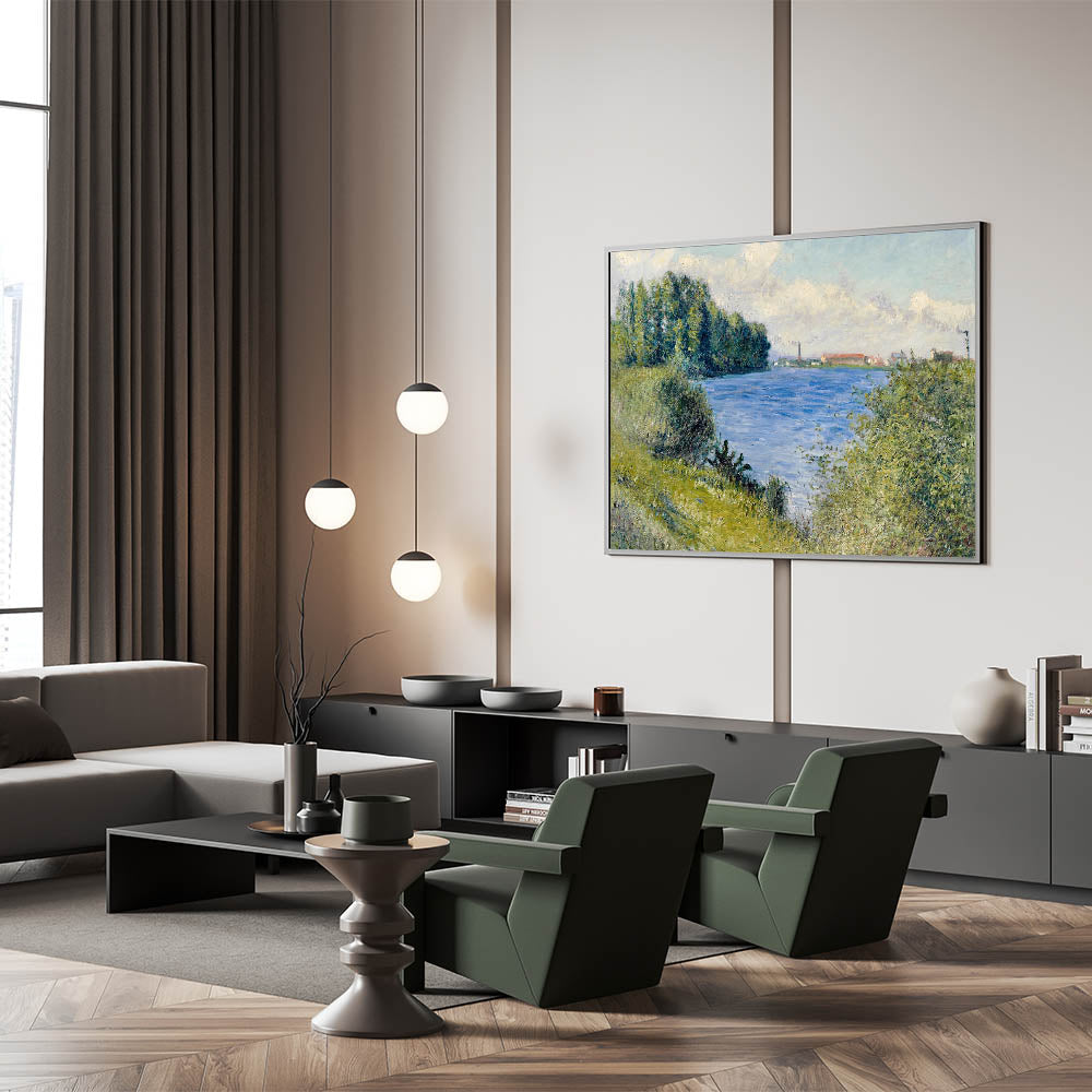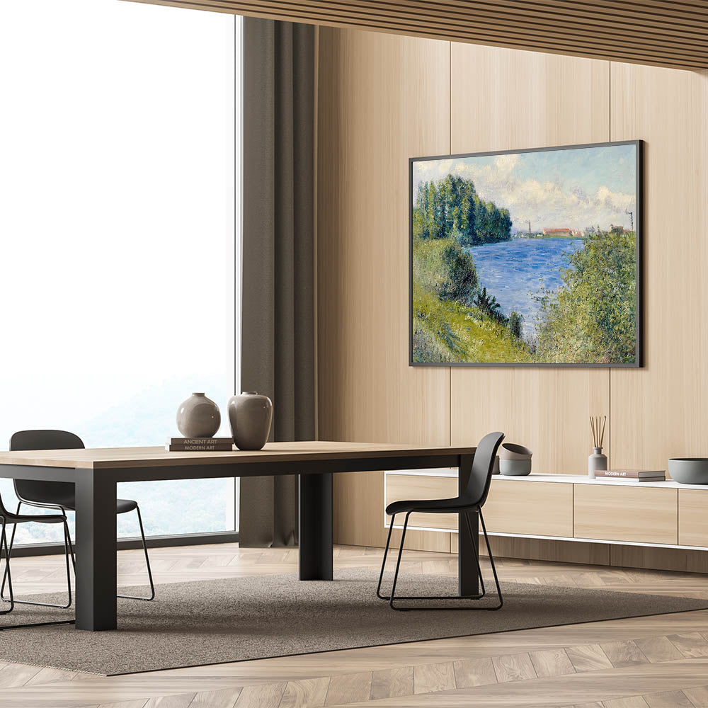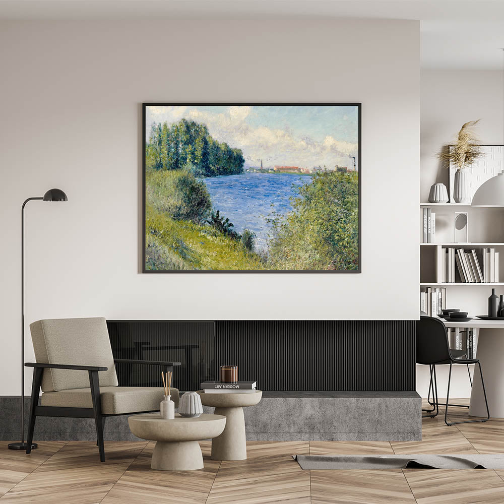 Transform your space with Gustave Caillebotte’s "The Seine at Argenteuil," a stunning Impressionist painting from around 1892. This artwork beautifully captures the tranquil flow of the Seine River, framed by lush greenery and a peaceful village in the distance. Caillebotte’s masterful use of light and texture conveys the serene charm of the French countryside.