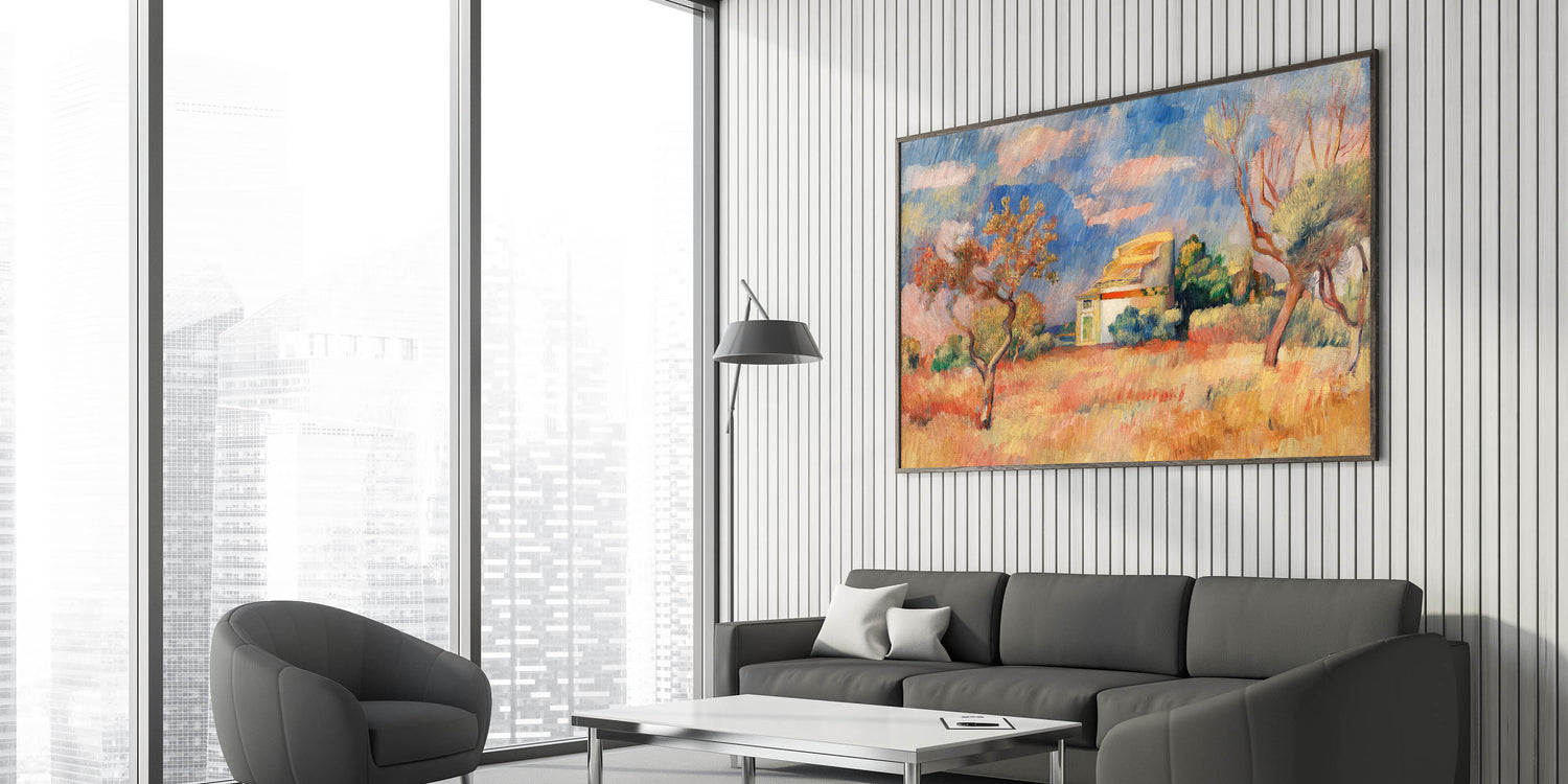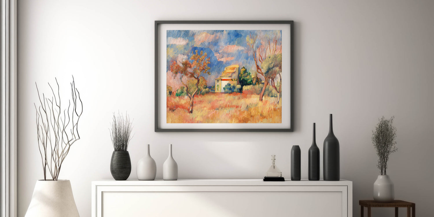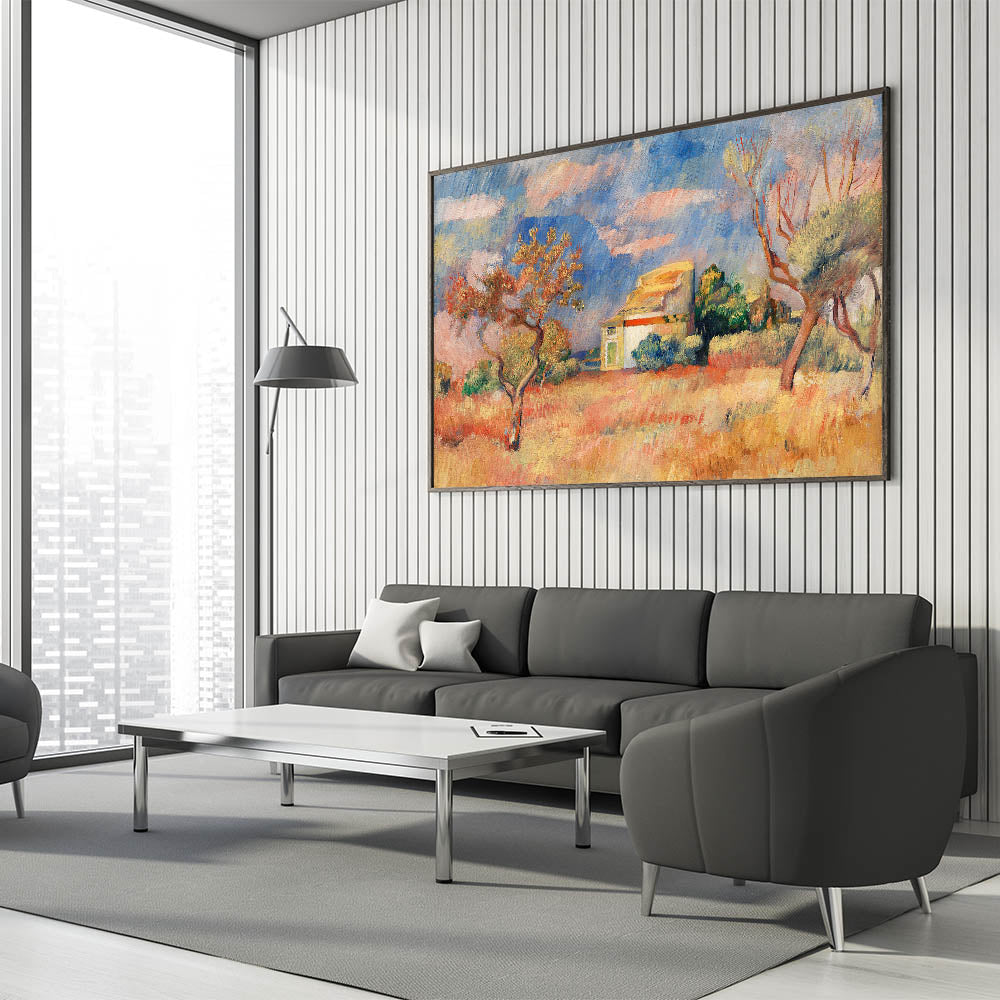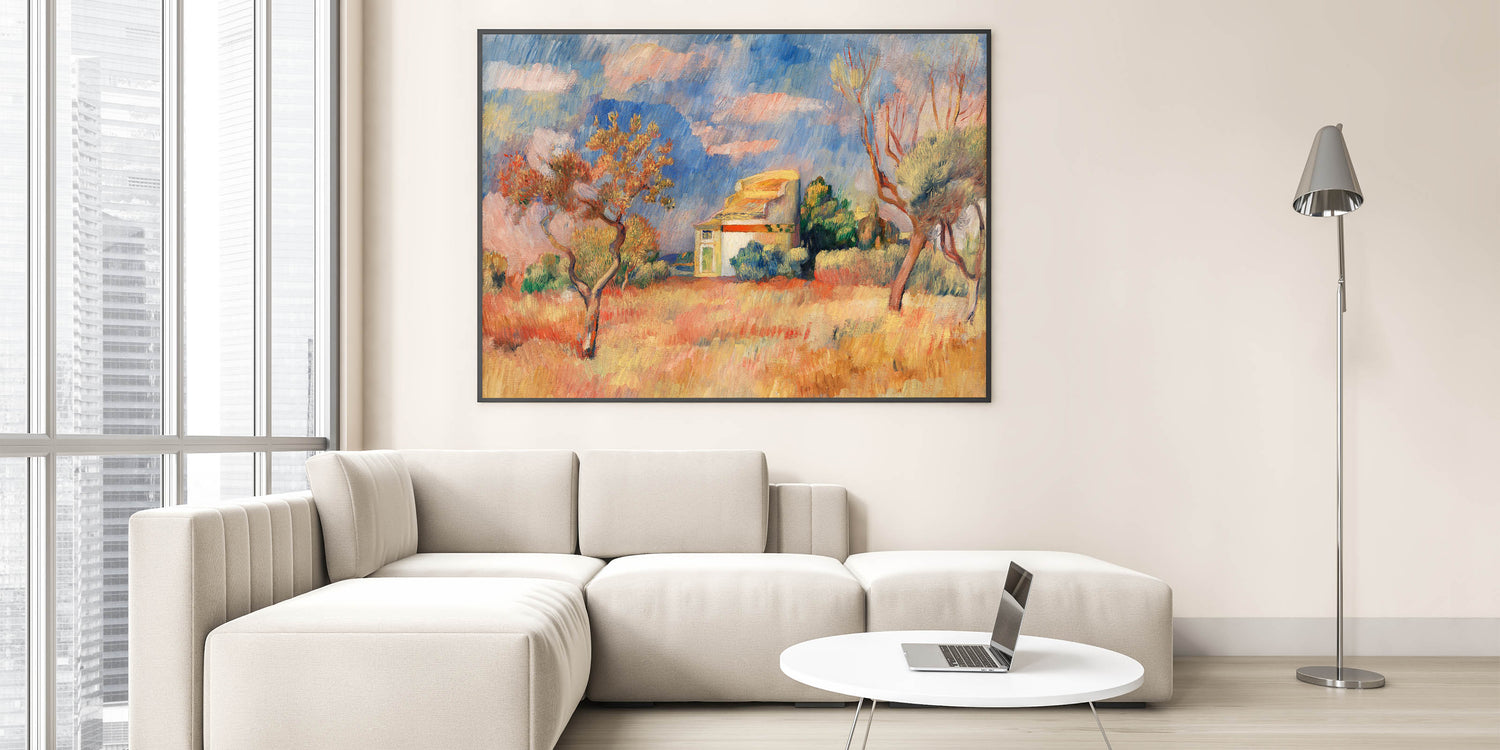 Add a piece of famous Impressionist art to your decor and let Renoir's expressive brushstrokes breathe life into your walls. Whether displayed in your living room, study, or office, this artwork brings the tranquility and warmth of the countryside into any space.