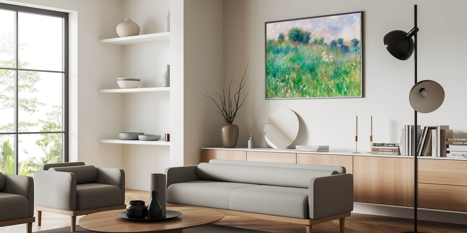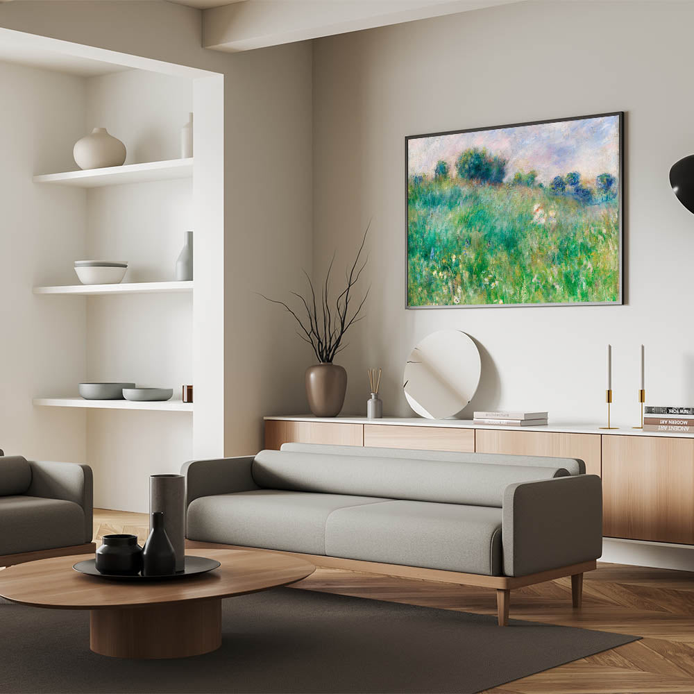 Add a touch of Impressionist elegance to your home with this beautiful meadow scene by Renoir, perfect for creating a serene, inviting space.