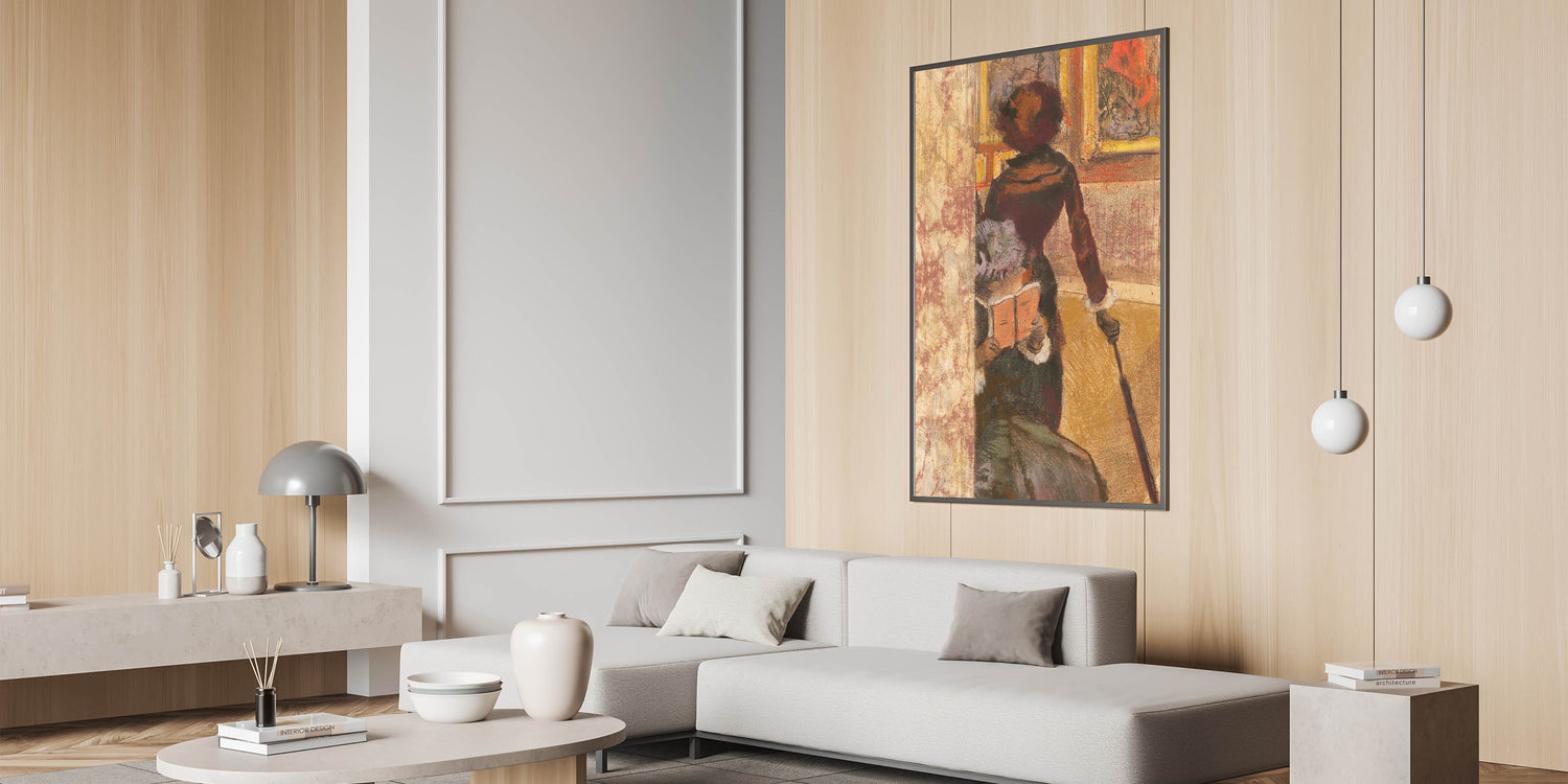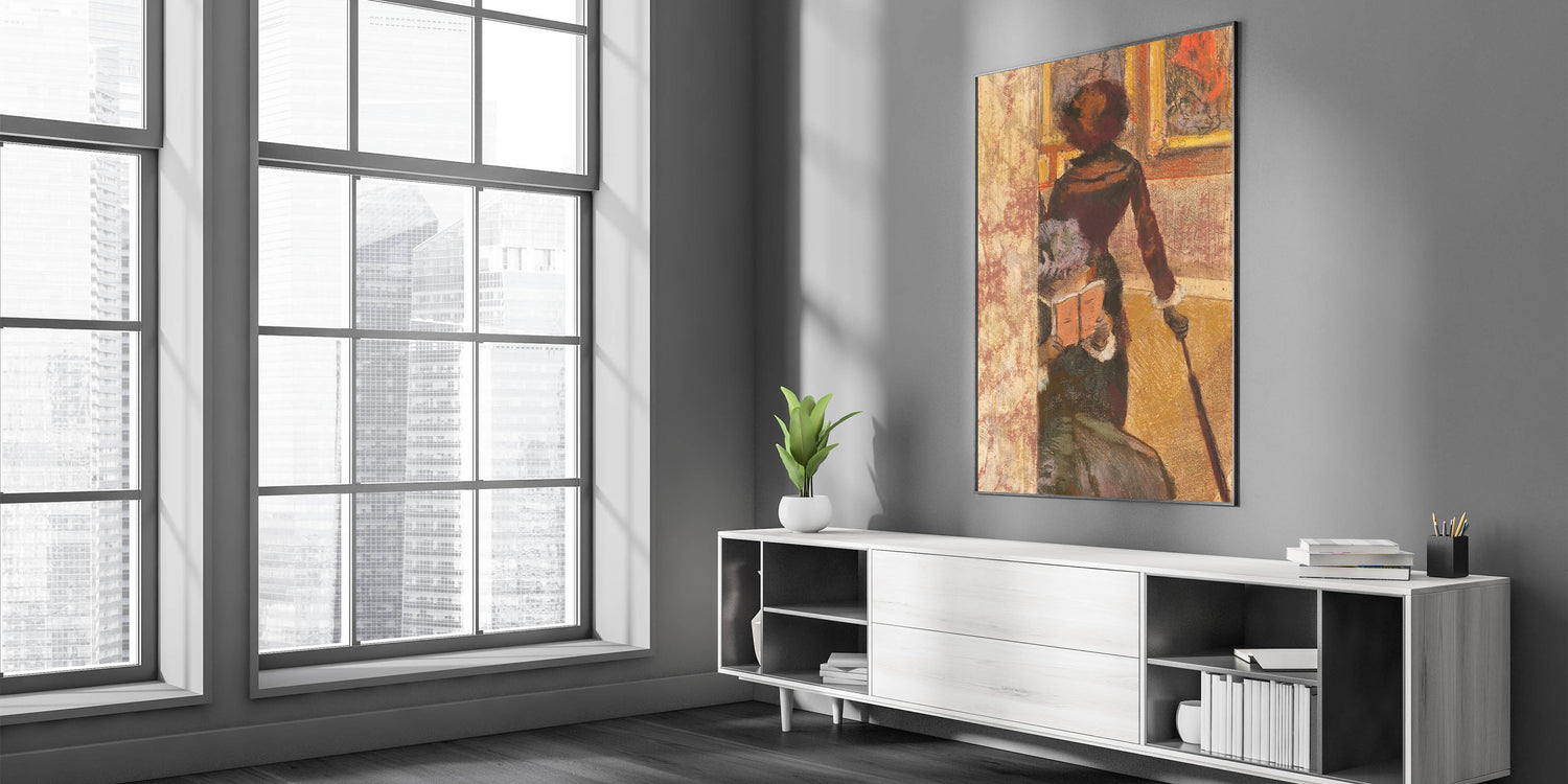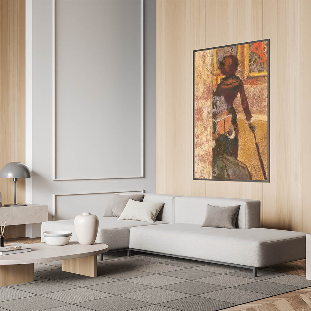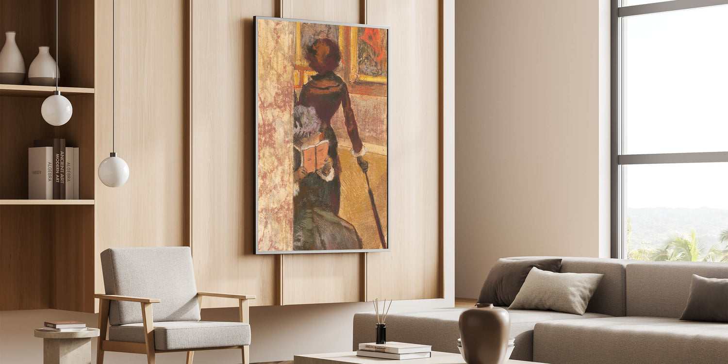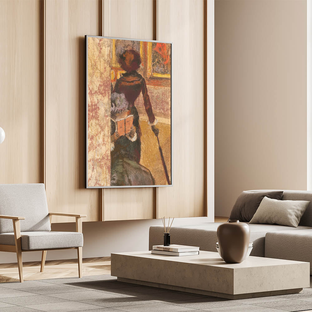 Add a piece of art history to your decor with "Mary Cassatt at the Louvre: The Paintings Gallery" by Edgar Degas. This artwork captures a quiet moment as the American artist Mary Cassatt, one of Degas’ close friends, observes a painting in the Louvre. The rich, earthy tones and textured brushstrokes make this piece a captivating study of form and perspective.